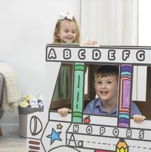 Les enfants peuvent colorier et décorer le bus, puis jouer ensemble grâce aux portes, fenêtres et toit ouvrant mobiles. Fabriqué avec du carton certifié FSC® , assemblage simple sans outils, impression avec des encres à base d’eau et entièrement conforme aux normes CE.