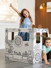 Sali a bordo di questo bus tutto da colorare per un divertimento creativo. I bambini possono colorarlo e decorarlo, poi divertirsi grazie alle porte, finestre e tettuccio apribili. Costruito in robusto cartone certificato FSC®, si assembla semplicemente senza attrezzi, è stampato con inchiostri a base d’acqua ed è pienamente conforme a CE/UKCA.