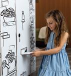 Ispira il gioco di ruolo con questa grande bancarella del mercato. I bambini possono colorare scene allegre con fiori, animali e verdure e giocare in modo interattivo grazie a porte e finestre che si aprono davvero. Costruita in robusto cartone certificato FSC®, si assembla semplicemente senza attrezzi, è stampata con inchiostri a base d’acqua ed è pienamente conforme a CE/UKCA.