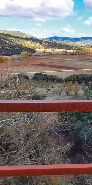 El itinerario avanza en un suave ascenso entre un entorno dominado por encinares —un auténtico refugio de sombra durante los meses más calurosos—. A medida que sumamos kilómetros, el paisaje abandona la llanura de la vega fluvial y se interna en la orografía ondulada de los páramos alcarreños, donde predominan los cultivos de secano.