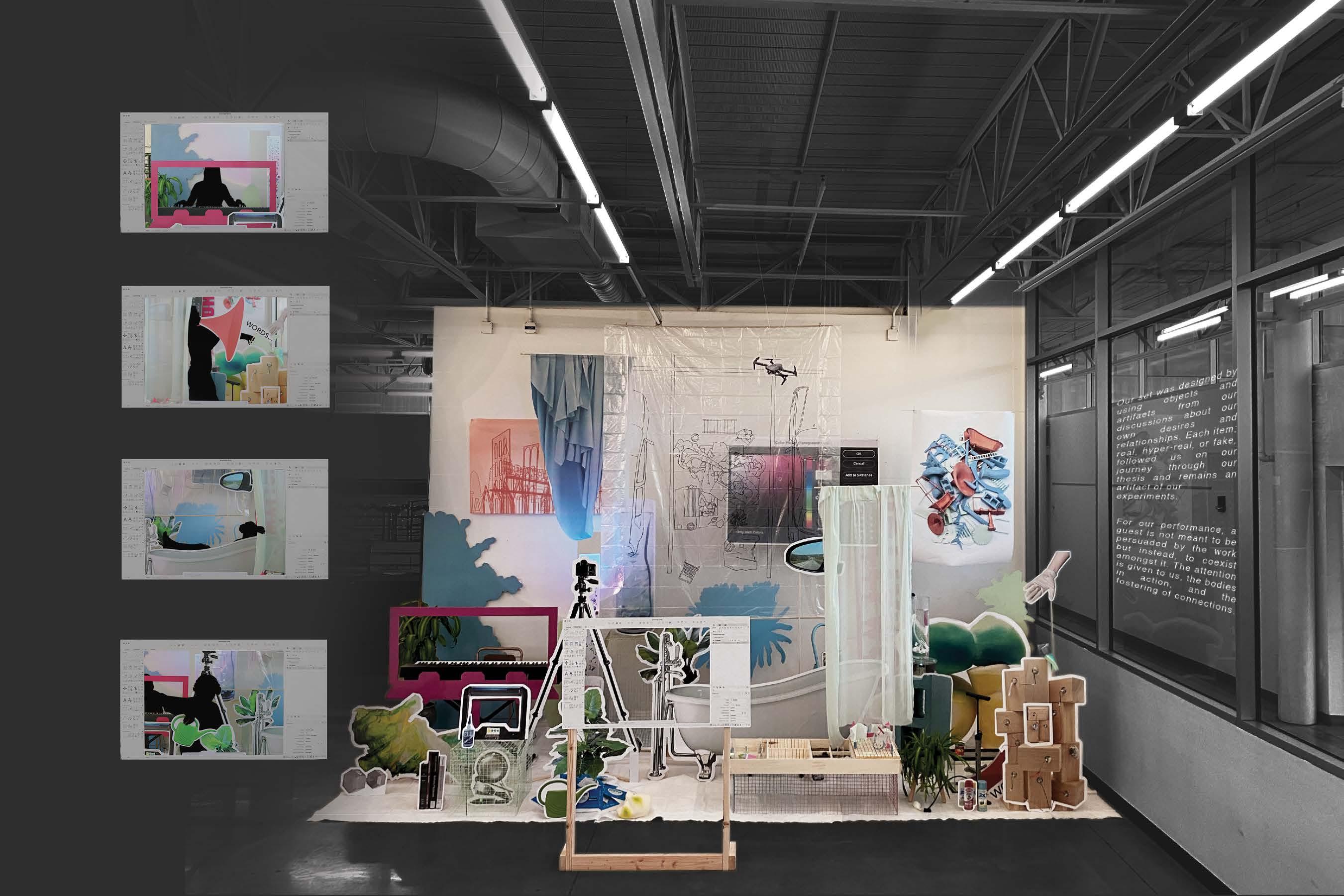 The designed performance questions the authenticity of desire and how we engage with our desires. Are all of your desires really your own? How many of your desires exist outside of you? The performance set utilizes 3D and 2D artifacts causing onlookers to decipher between the real and the false.