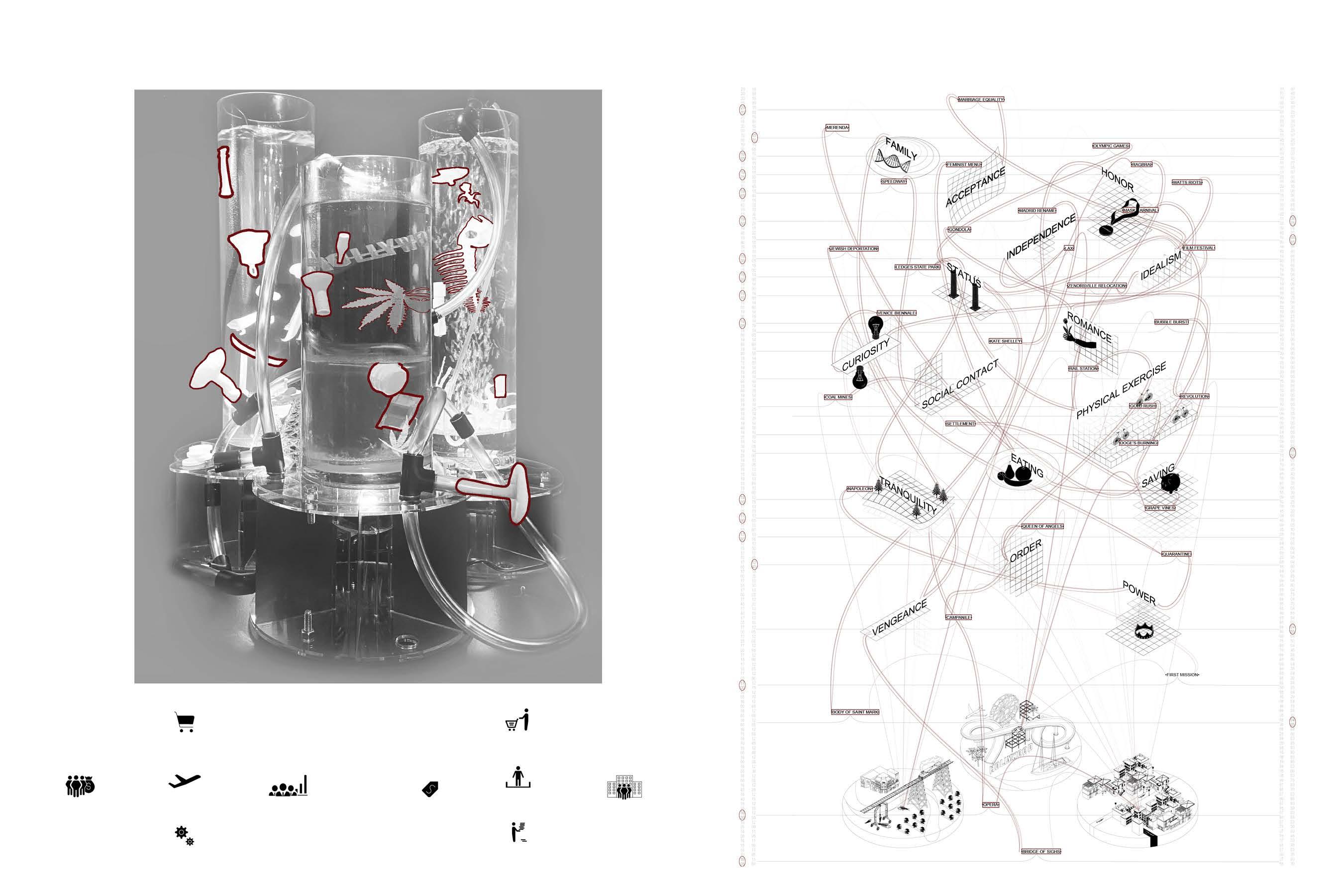 The 16 basic human desires are felt through narratives that have shaped cities of all scales and histories. Venice, Los Angeles, and Boone, are the representative of how different types of cities emerges from desire.