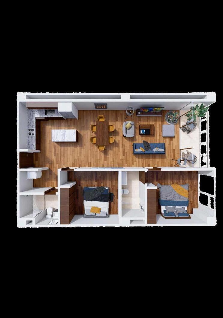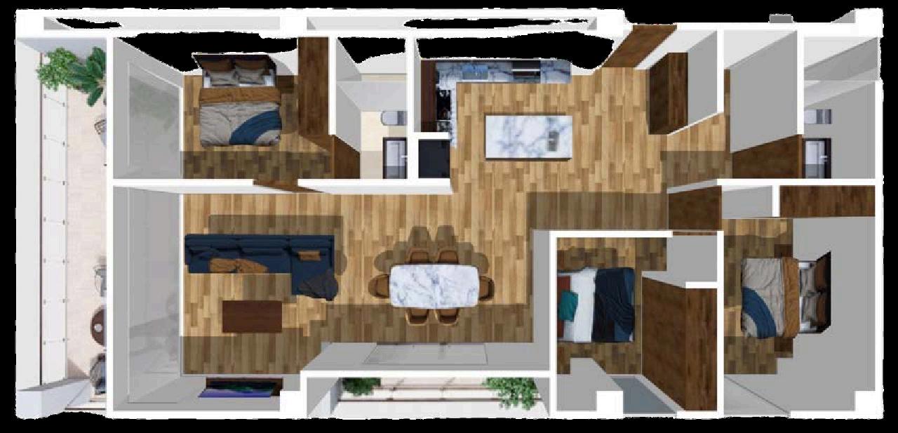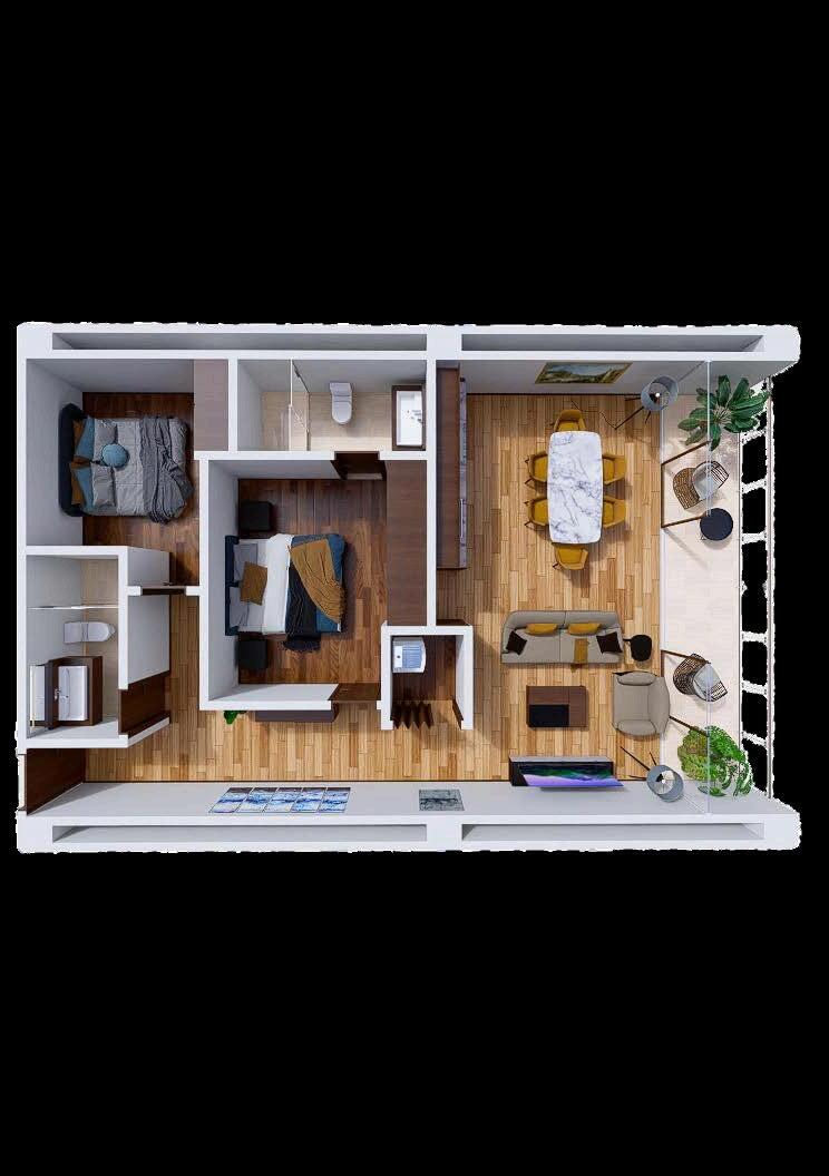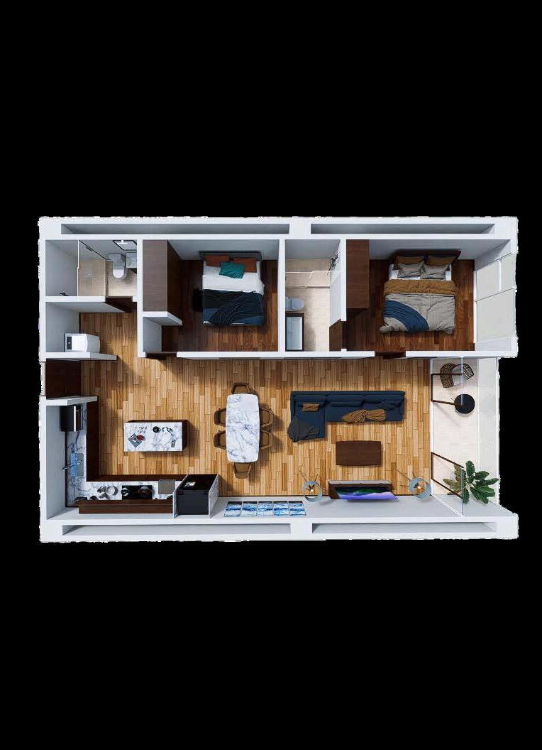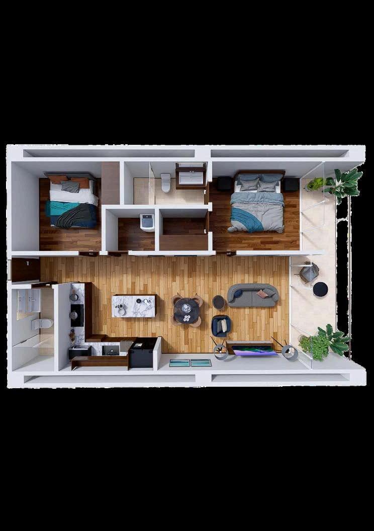 1, 2 recámaras, 2 recámaras + flex 55 m2
