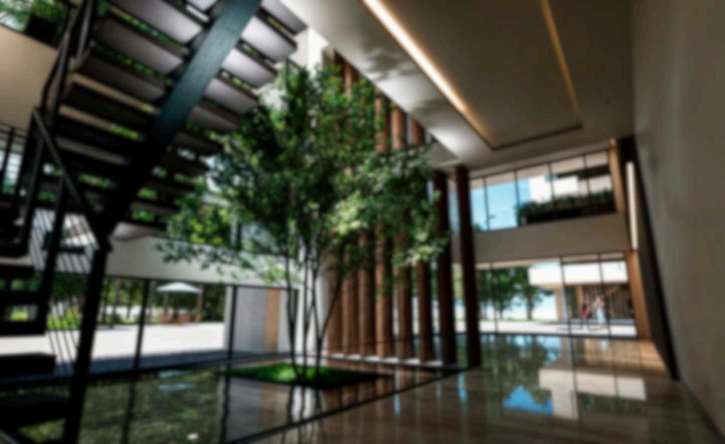 Áreas de recreación al aire libre, espacios interiores de confort y productividad