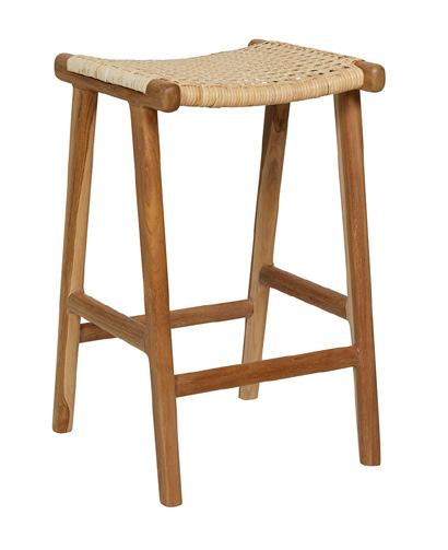 Leather Strapping Bar Stool in Teak & Tan