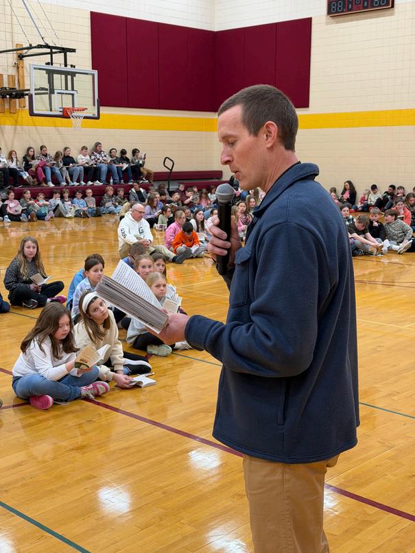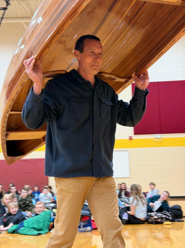 ClevelandSchoolenjoyedthe OneSchoolOneBooktitle, 'AWeekintheWoods'by AndrewClements. AdventurerPaulSholvisited toreadthelastchapterand sharehisadventureswith students!Heevenbrought thecanoehemade.