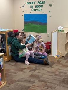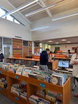 concurrent Children's Literature class visited the public library to learn how to choose and read books to kindergarten students. These juniors and seniors will be paired with Ms Lillis' and Ms. Schoeneck's kindergarten students at Lincoln for a reading buddy program.