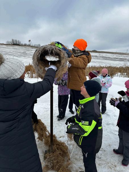 Studentsassistedin refreshingthehen housesonthewetlands atPWLC,whichmallard henswillusefor nestinginthespring.