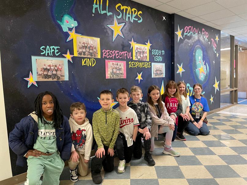 Aspecialthankyouto McKinleystaffmember AnnaFremontfor creatingthismuralThis groupofstudentswas recentlyrecognizedfor theirrespectfulbehavior andbeingnamed McKinleyAllStar studentsoftheweek!