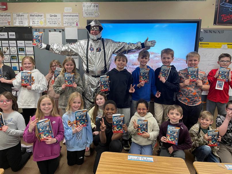 Mr.Colbeck!Allstudentsat AdamsandMcKinleyenjoyed readingthesamebookatthe sametime,andenjoyedseeing theirprincipaldressedasan astronaut.