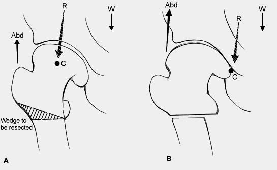 Osteotomías el efecto biomecánica de retirar el segmento necrótico o colapsado de la cabeza femoral. la reducción de la hipertensión venosa y la disminución consiguiente de la presión intramedular. no son ampliamente aceptadas como un método estándar en el tratamiento. osteotomías rotacionales transtrocantéricas y osteotomías intertrocantéricas varizantes o valguizantes
