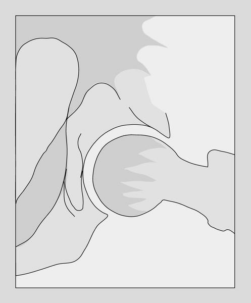 A la izquierda cadera en addución observándose contacto entre cabeza femoral y cótilo. A la derecha en abducción observándose acúmulo de contraste por separación entre cabeza femoral y cótilo.