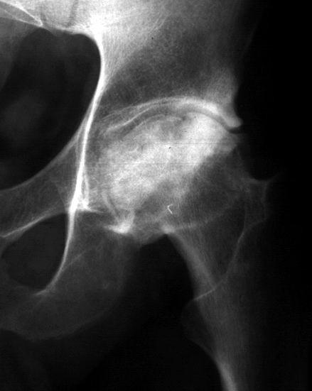 Presencia de quistes y esclerosis en la cabeza femoral.