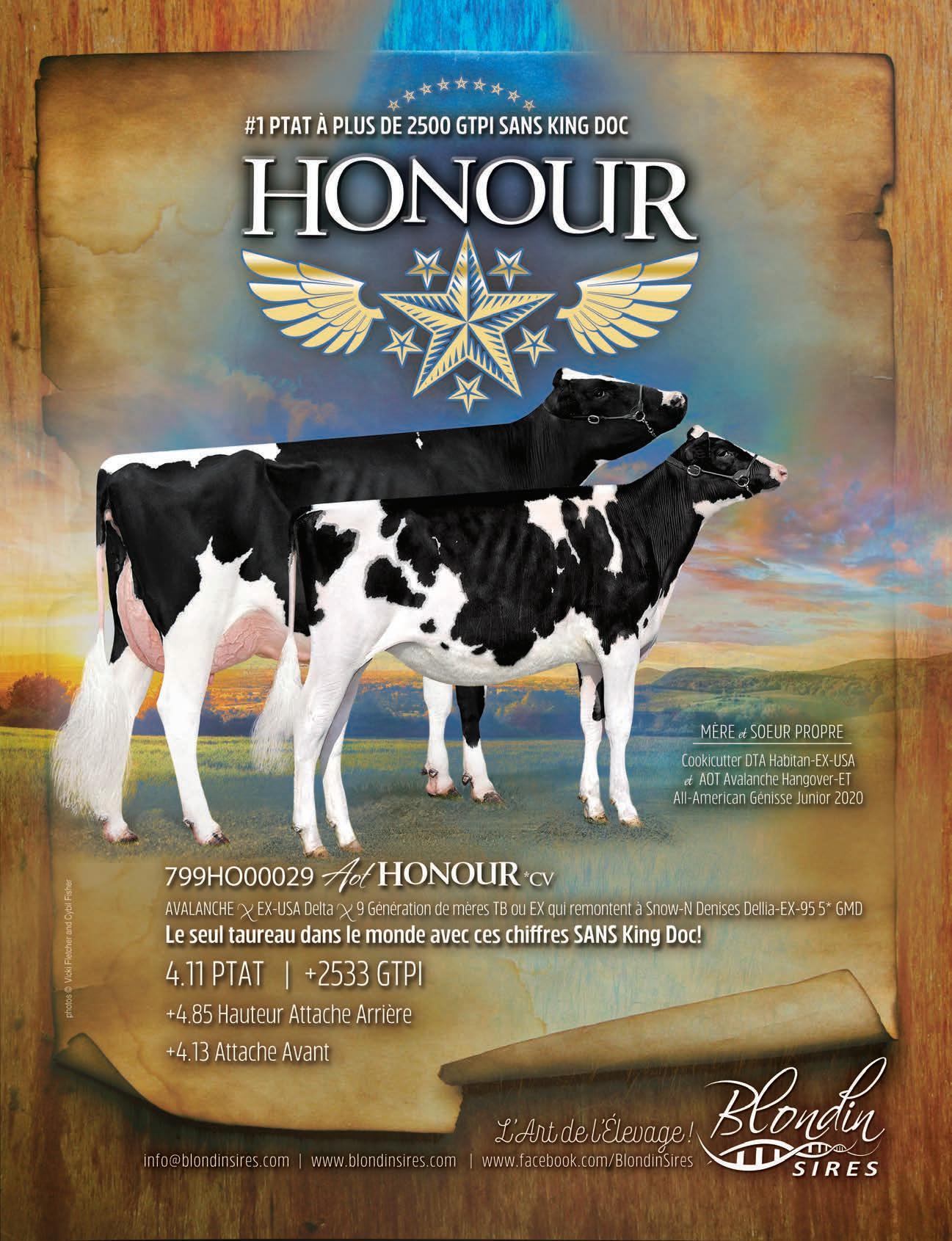 fille de Val-Bisson Doorman 5-03 3x 305 j 13,104 Kg L 5.0%G 3.2%P 2E MÈRE KINGS-RANSOM DORC DEXTRA-ET EX-94 2E 5* fille de Coyne Farms Dorcy 5-10 3x 305 j 15,091 Kg L 3.8%G 3.2%P 3E MÈRE KINGS-RANSOM BAXTER DOLLY TB-87 DOM 5-10 3x 305 j 10,764 Kg L 3.6%G 3.1%P 4E - 12E MÈRES TB-88 GMD DOM x EX-91-2E DOM GMD x EX-91 GMD DOM x TB-87 GMD DOM x TB-85 GMD DOM x TB-87 GMD DOM x TB-88 GMD DOM x TB-87