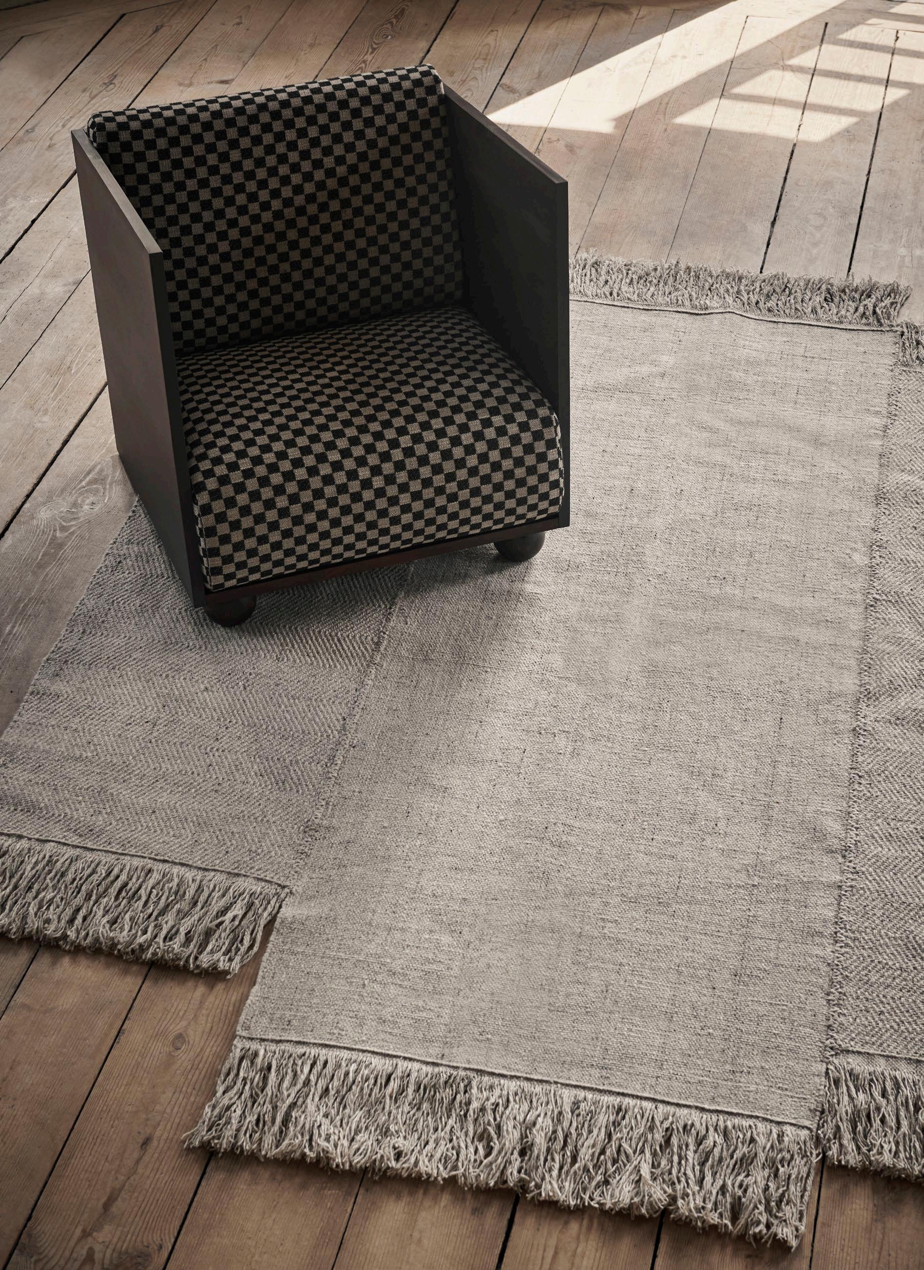 The clean and classic expression of this striped textile has been designed in partnership with Louisiana Museum of Modern Art. Inspired by the graphic lines and discreet modernism of Louisiana’s iconic architecture, the classic yet bold stripe mirrors the pervasive wooden slats and black window frames distinctive to Louisiana, as does the understated black and sand colourway, while the textured, wool-based fabric intrigues your sense of touch.