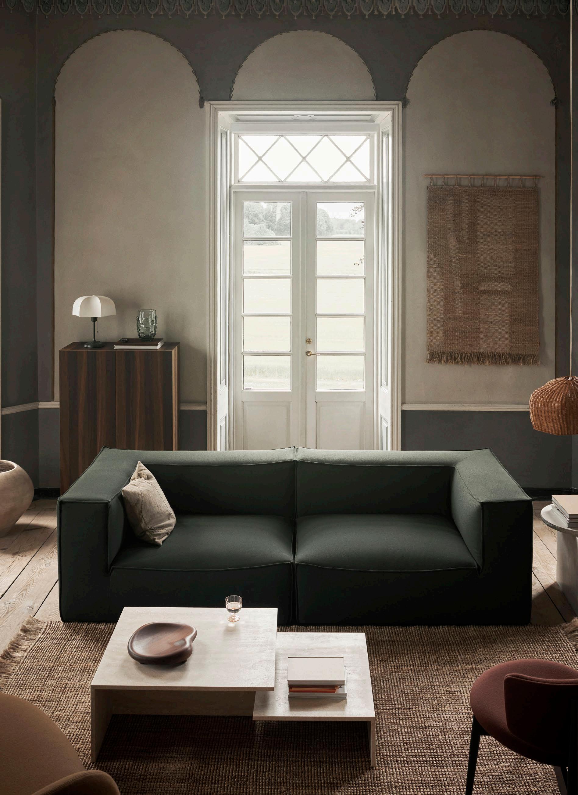 The embracing, beanbag-inspired shape of our low-slung Catena sofa is generously dimensioned for all-out relaxation and cosiness: we call it ‘low living’. The name Catena is inspired by the catenary curve, a u-like shape that a chain or cable adopts when supported only at its ends, and which is mirrored in the soft curves and top-stitched seams of the Catena sofa. The homely, module-based designs are made with innovative microcellular foam that ensures maximum comfort as well as durability. This piece is upholstered in our special edition Check fabric. The classic yet bold pattern is presented in an understated black and sand colourway, while the textured, wool-based fabric intrigues your sense of touch.