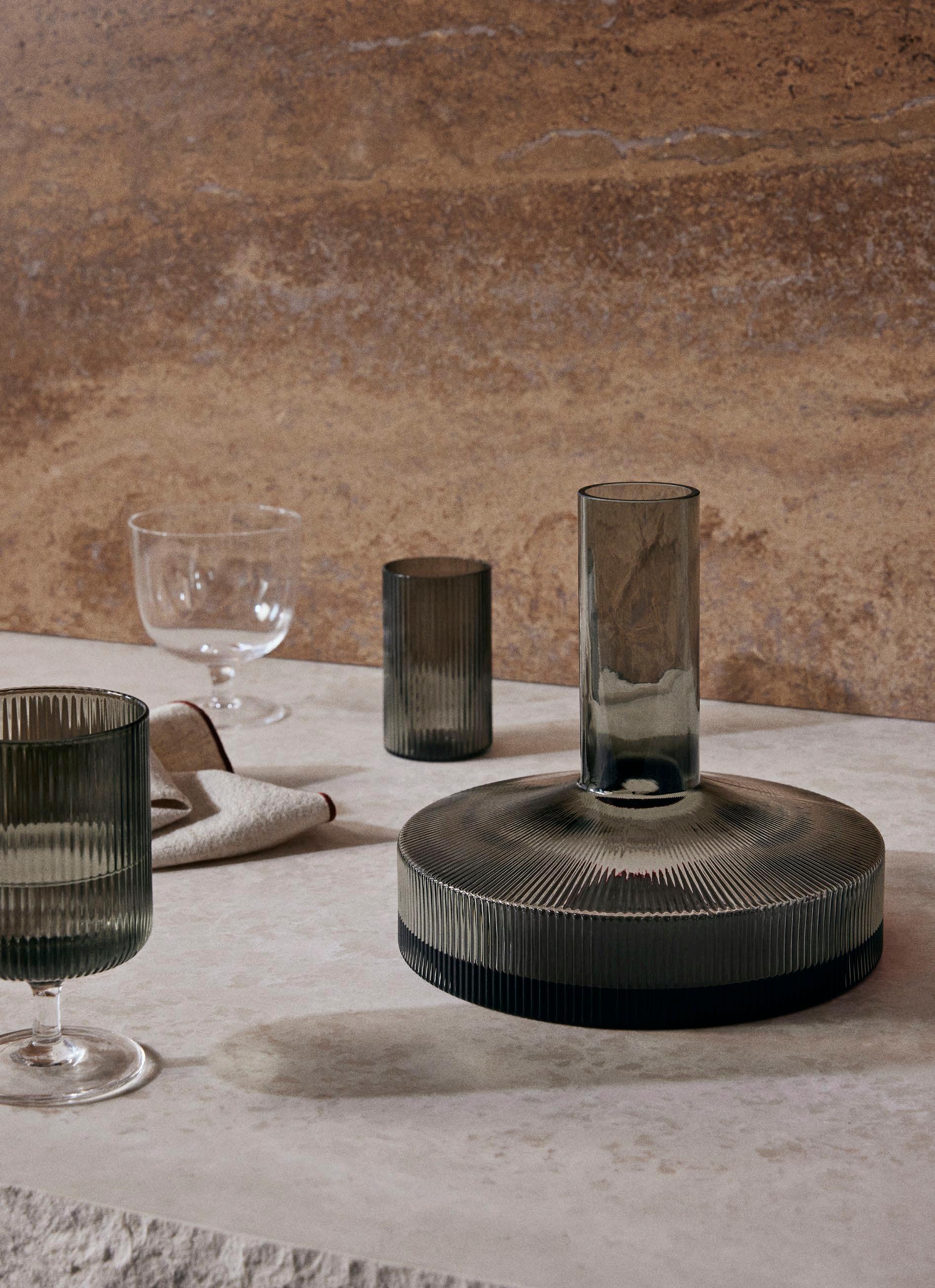 1104268096 SMOKED GREYWith each piece featuring a different, unique pattern, the Doodle Collection makes an artful addition to any glassware collection. Made entirely from durable borosilicate glass, the distinctive, wavy patterns are crafted by an experienced glass master using a torch, ensuring that no two pieces are identical. The clear glass provides the Doodle pieces with a clean, modern look, while the wavy design grants them a distinctive, whimsical expression.