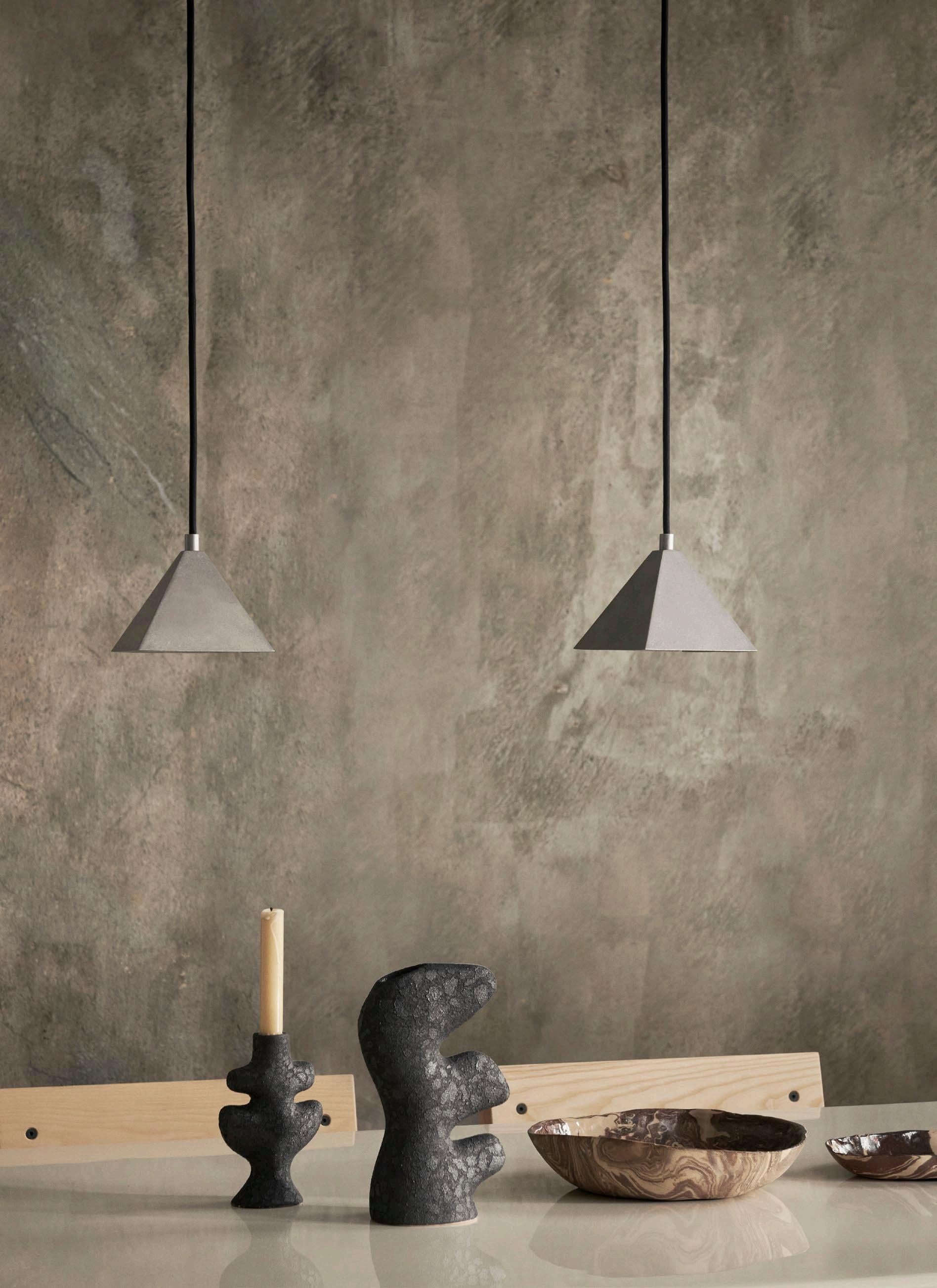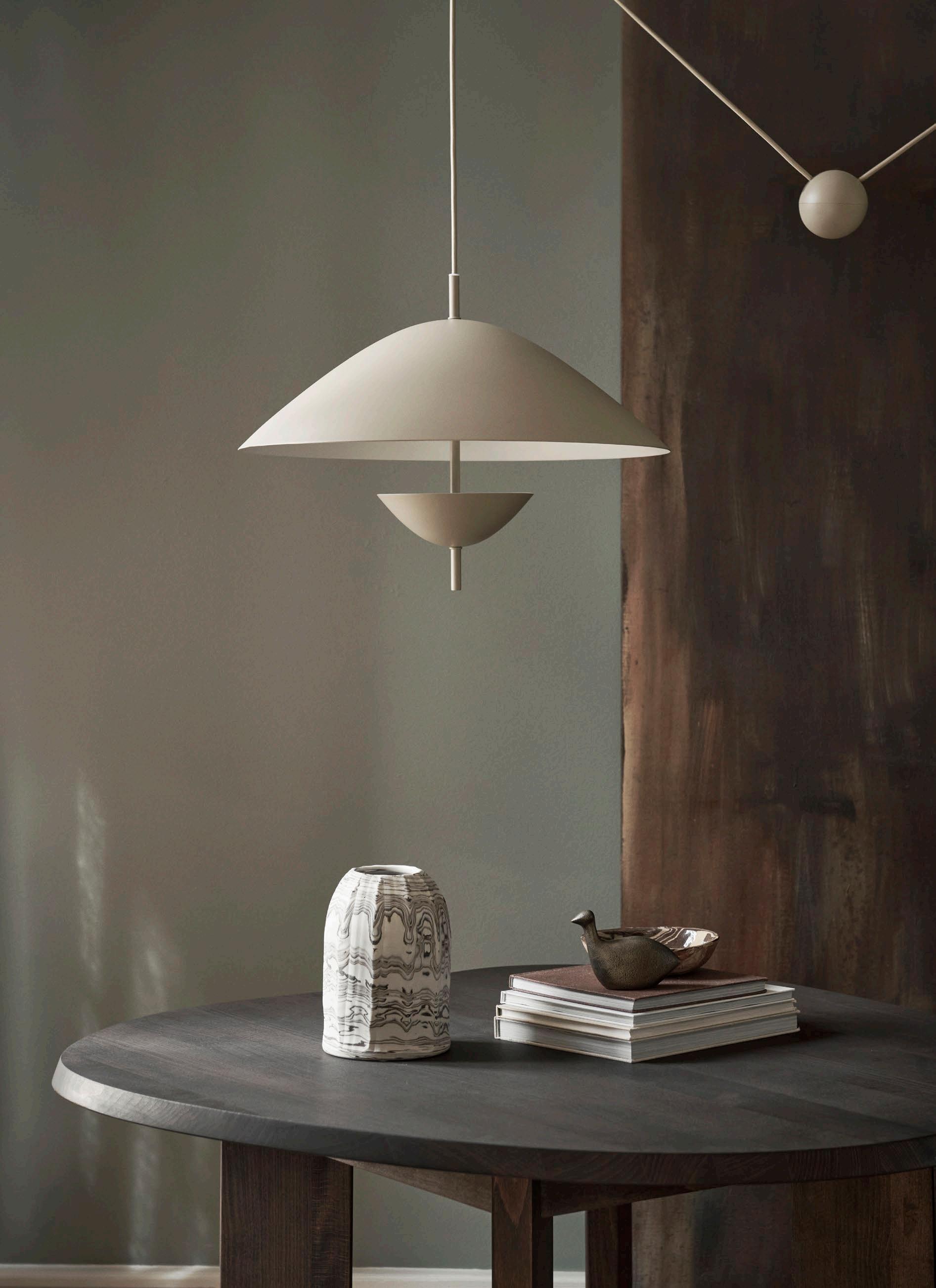 Referencing the Danish word for ‘weight’, the Lod Pendant gracefully captures a playful yet elegant design. With a striking graphic silhouette, the height of the lampshade can be easily adjusted using the counterweight or the shade’s perpendicular rod. Bathing your space in a gentle and luminous glow, the pendant illuminates with a soft radiance, while its reflective surfaces contribute to a soothing atmosphere. The Lod Pendant is completed by a matching ceiling bracket and canopy and is accompanied by a textile cable that enhances its visual allure and adds to its overall graphic charm.