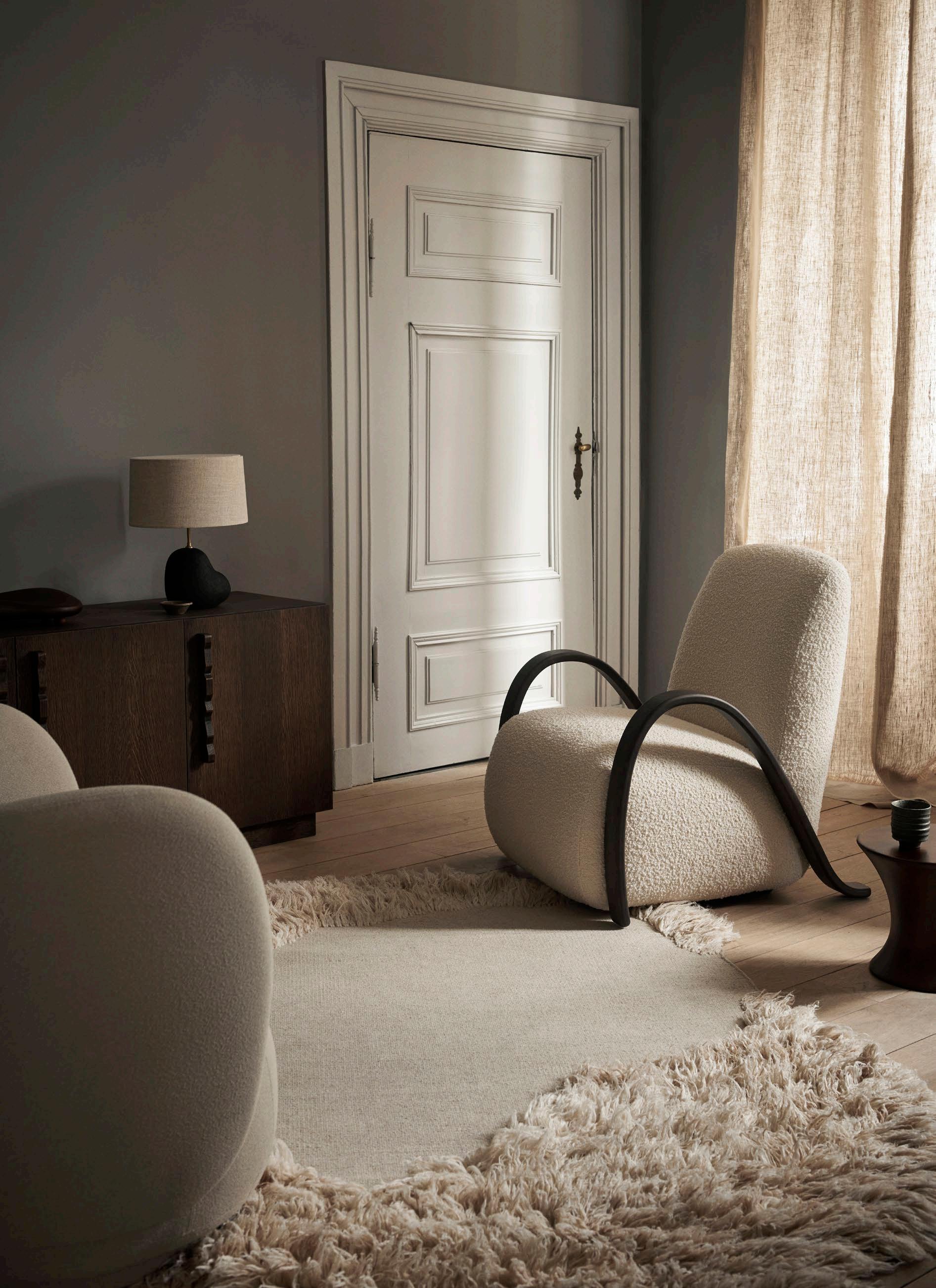 The Buur Lounge Chair effortlessly combines comfort and elegance, featuring a luxuriously cushioned seat and backrest. Designed in collaboration with Says Who, the chair has distinctive, curved armrests crafted from FSC™ certified oak that beautifully mimic the natural flow, enhancing its rounded design. With its smooth construction, the Buur Lounge Chair invites you to indulge in its plush upholstery and experience a truly enveloping embrace. With its vintage-inspired aesthetic, the Buur Lounge Chair serves as a stunning statement piece in any room.