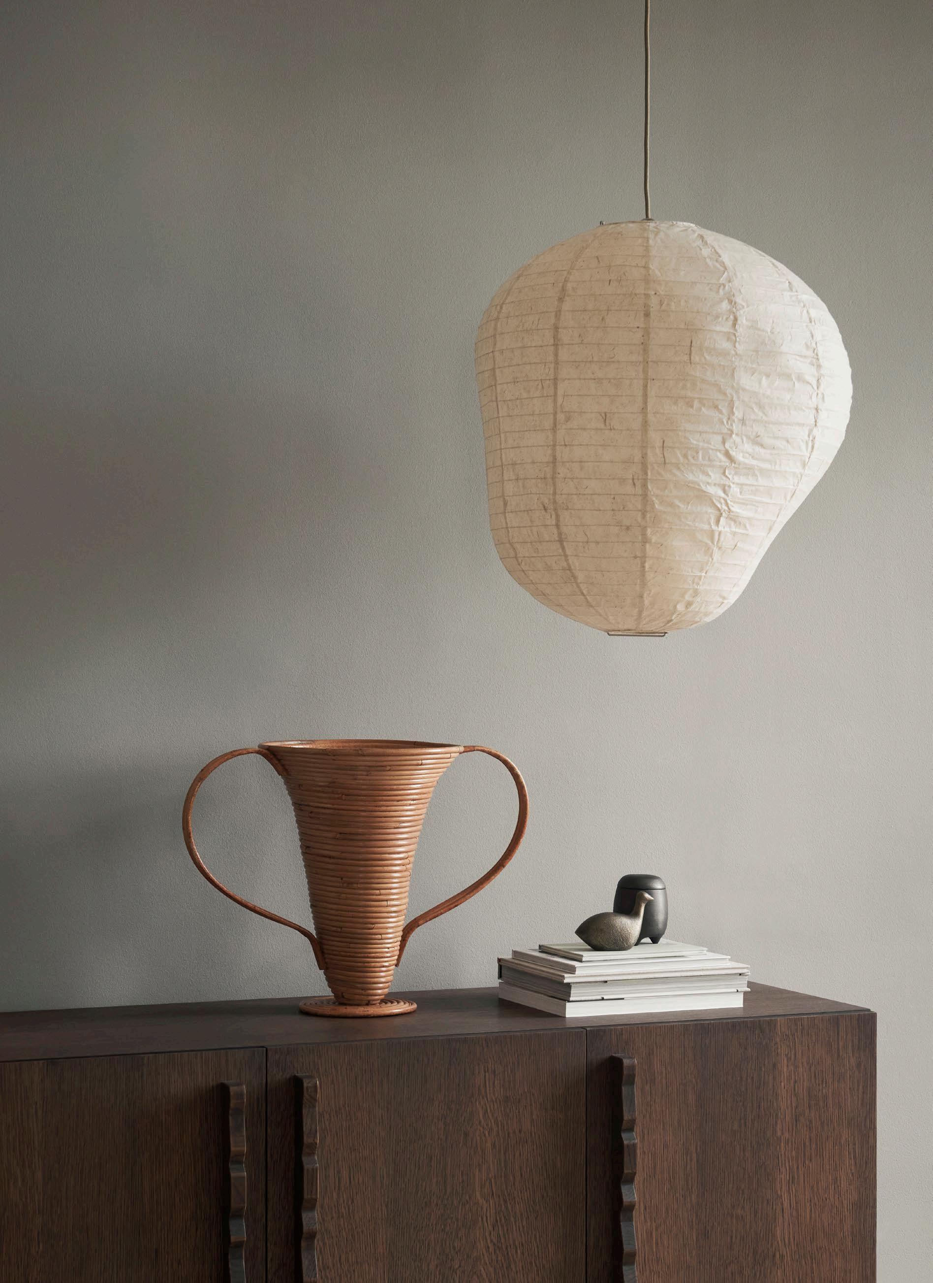 The Kurbis Lampshade presents a charming twist on the classic rice paper lantern. Crafted from characteristically rich Washi paper, Kurbis deviates from the traditional round shape, instead embracing an organic and asymmetric silhouette that gives it a distinctive and unique look. Inspired by the pumpkin and squash family, the rice paper lampshade emanates a soft and gentle light that adds ambiance and charm to any room.