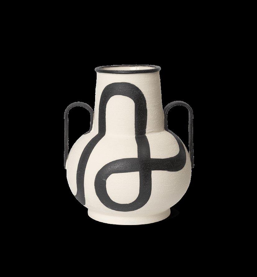 The name ‘Trace’ aptly describes the hand painted line that gracefully adorns the body of this vase. Resembling a meandering path, the line creates a captivating graphic imagery that beautifully contrasts the vase’s curvaceous form. The handles seamlessly extend from the path, infusing the line with a sense of movement as it gracefully transitions into a threedimensional shape. The generous size of the vase makes it ideal for making a bold statement as a floor vase or for showcasing flowers on a tabletop. 1104268258 OFF-WHITE