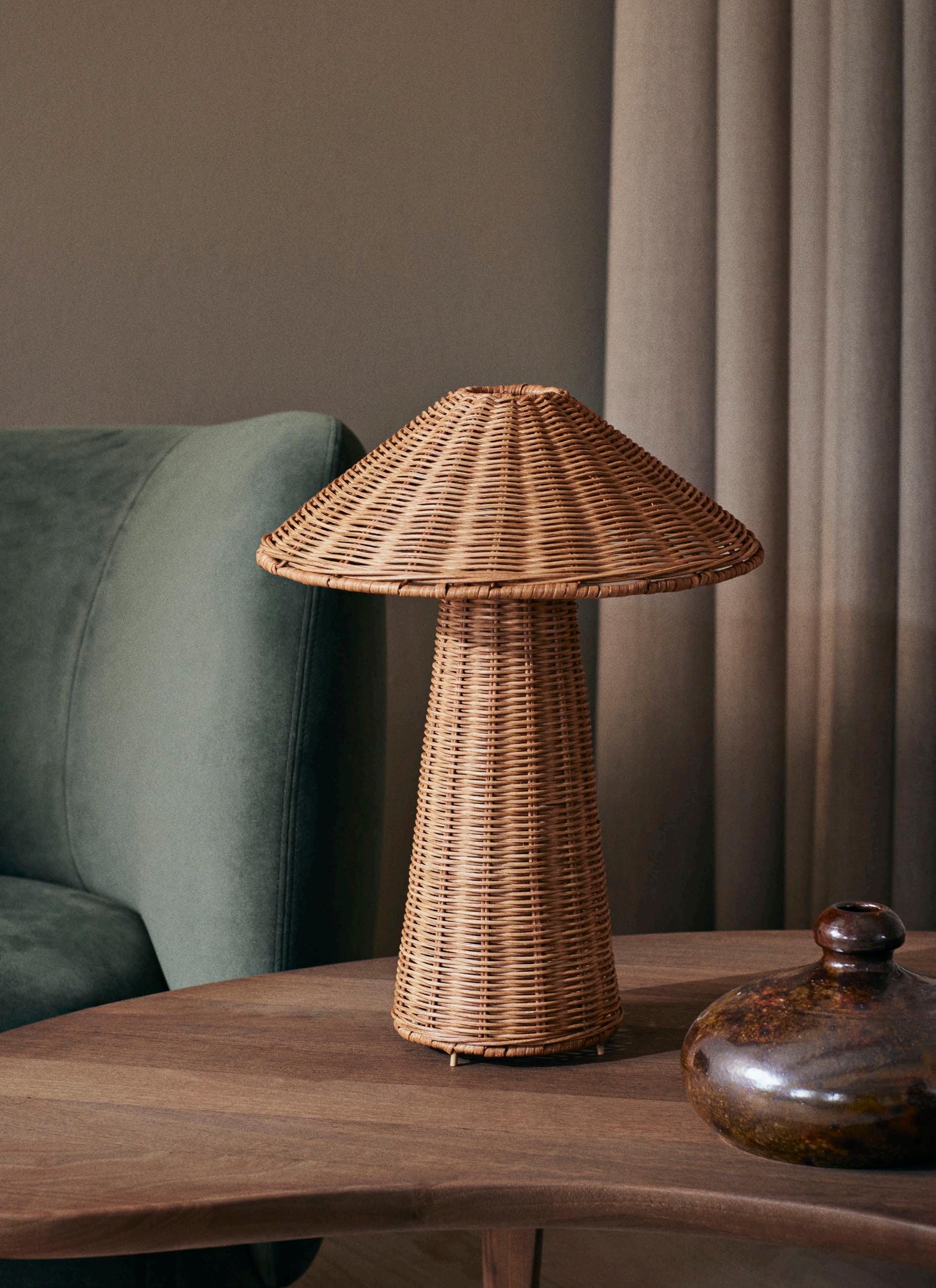 The Drape Lampshade is hand braided from natural rattan, boasting an organic and irregular shape that casts gentle, distinctive shadows. Creating a mesmerising ambiance, it serves as a natural, textural addition to any space. Use it as a captivating centrepiece throughout the home or as a soothing source of calming light in the kids’ room.
