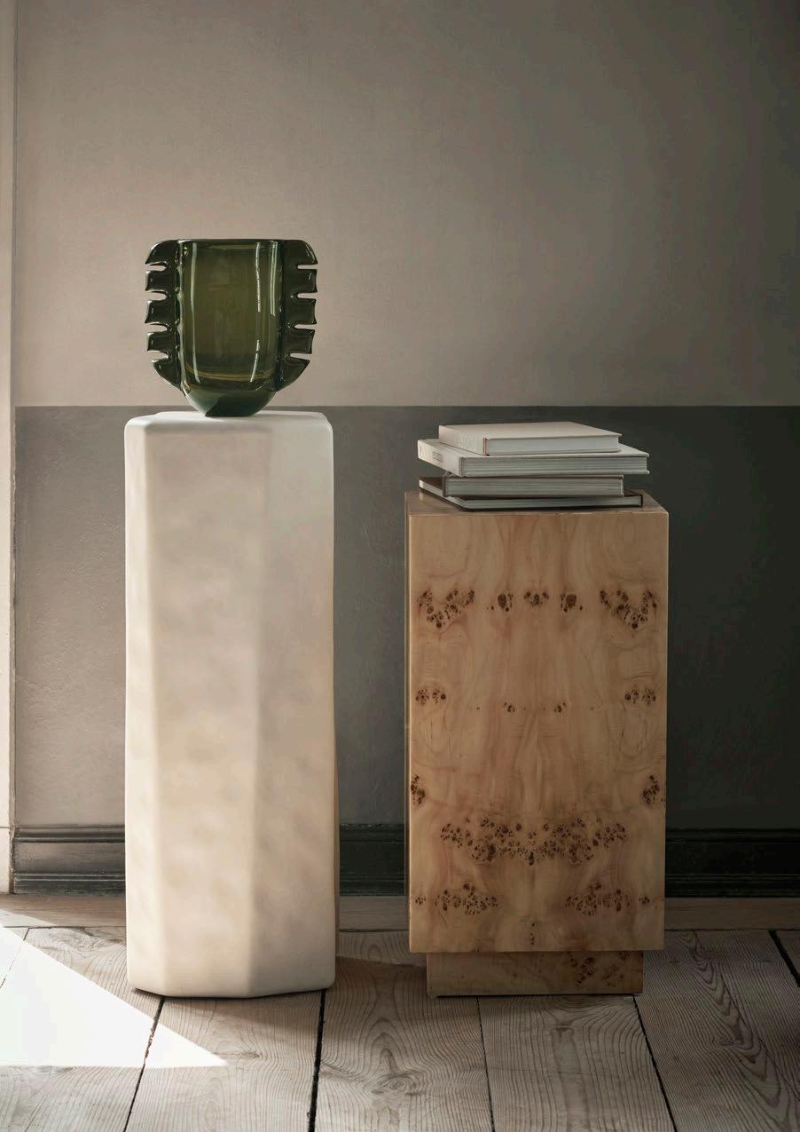 This season’s pieces boast sleek silhouettes set against dark woods, a bold fusion that evokes new expressions. Matte textures conversewith high-gloss finishes, while raw, unrefined beauty coexists with polished sophistication. The interplay of soft and solid forms a symphony of design. Within these contrasting harmonies lies an enduring allure.