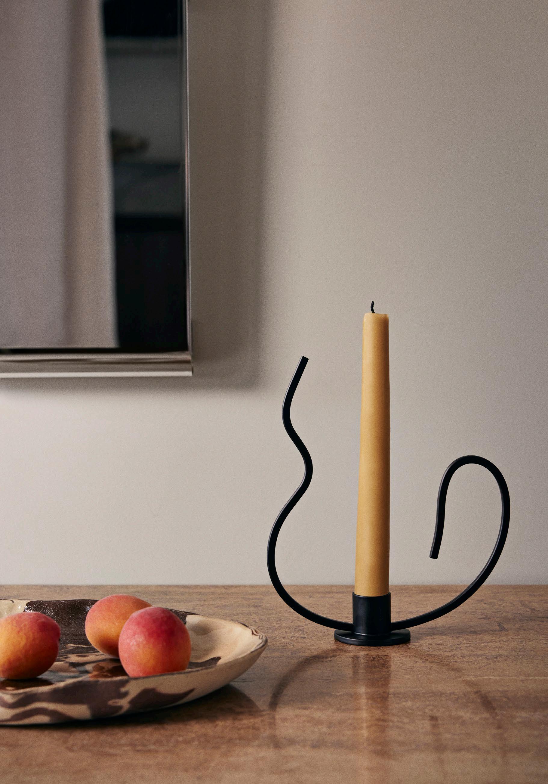 As if frozen mid-dance, the Valse Candle Holder has a fluid and wavy form. Taking inspiration from the graceful movements of the Waltz dance, this piece is crafted from powder-coated iron and has an elegant shape, featuring a curved metal rod that invites you to hold and move the candle holder around with you.