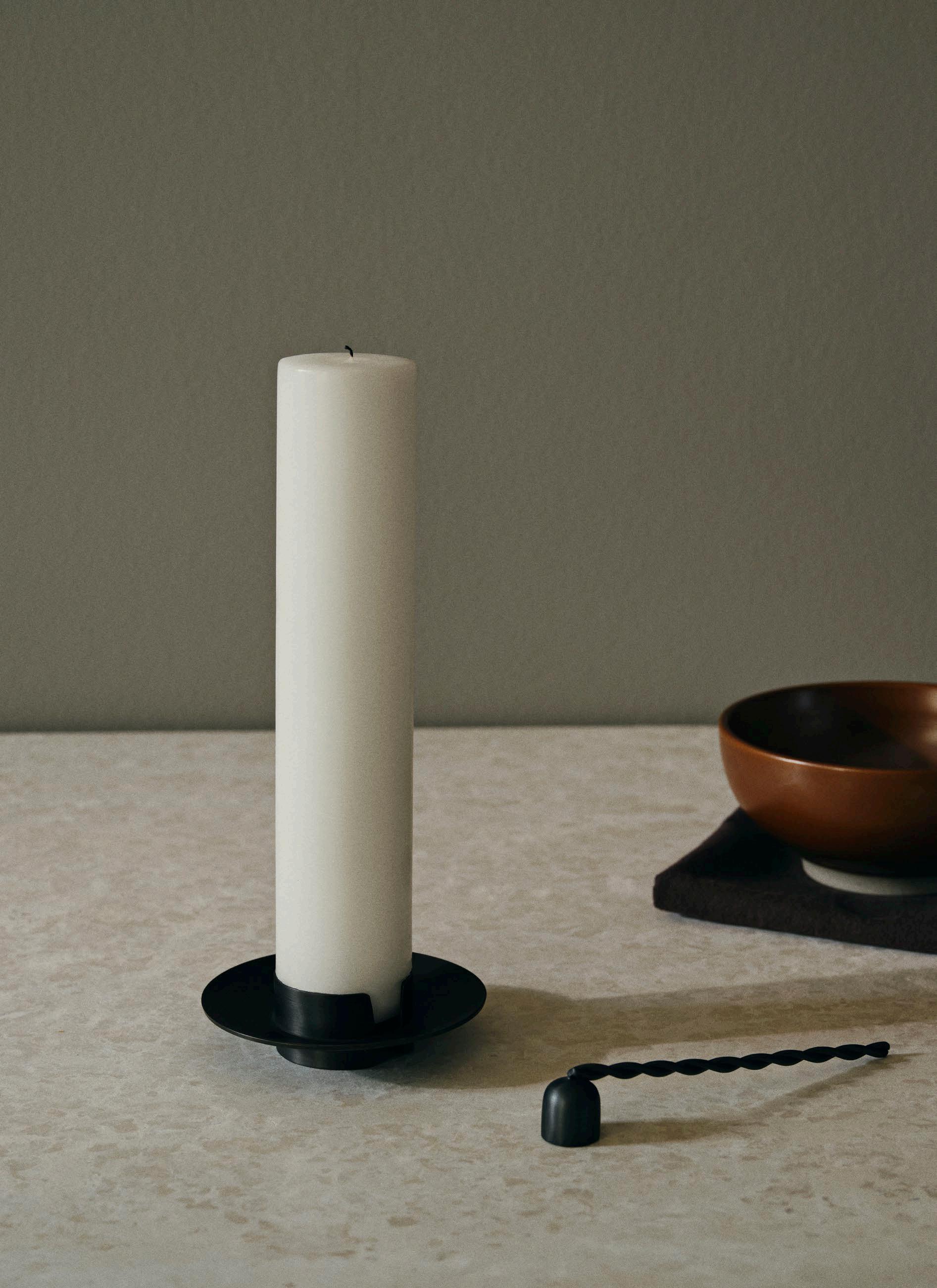 Highlighting functionality and minimal design aesthetics, the Block Candle Holder features a functional bowl detail that collects running candle wax. With its brushed finish, it will add an elegant, sleek touch to your decor. Made entirely from brass, the Twist Candle Snuffer presents an elegant and practical method of extinguishing your beloved candles. With a whimsical and decorative expression, you can comfortably leave the Twist Candle Snuffer out on display when not in use.