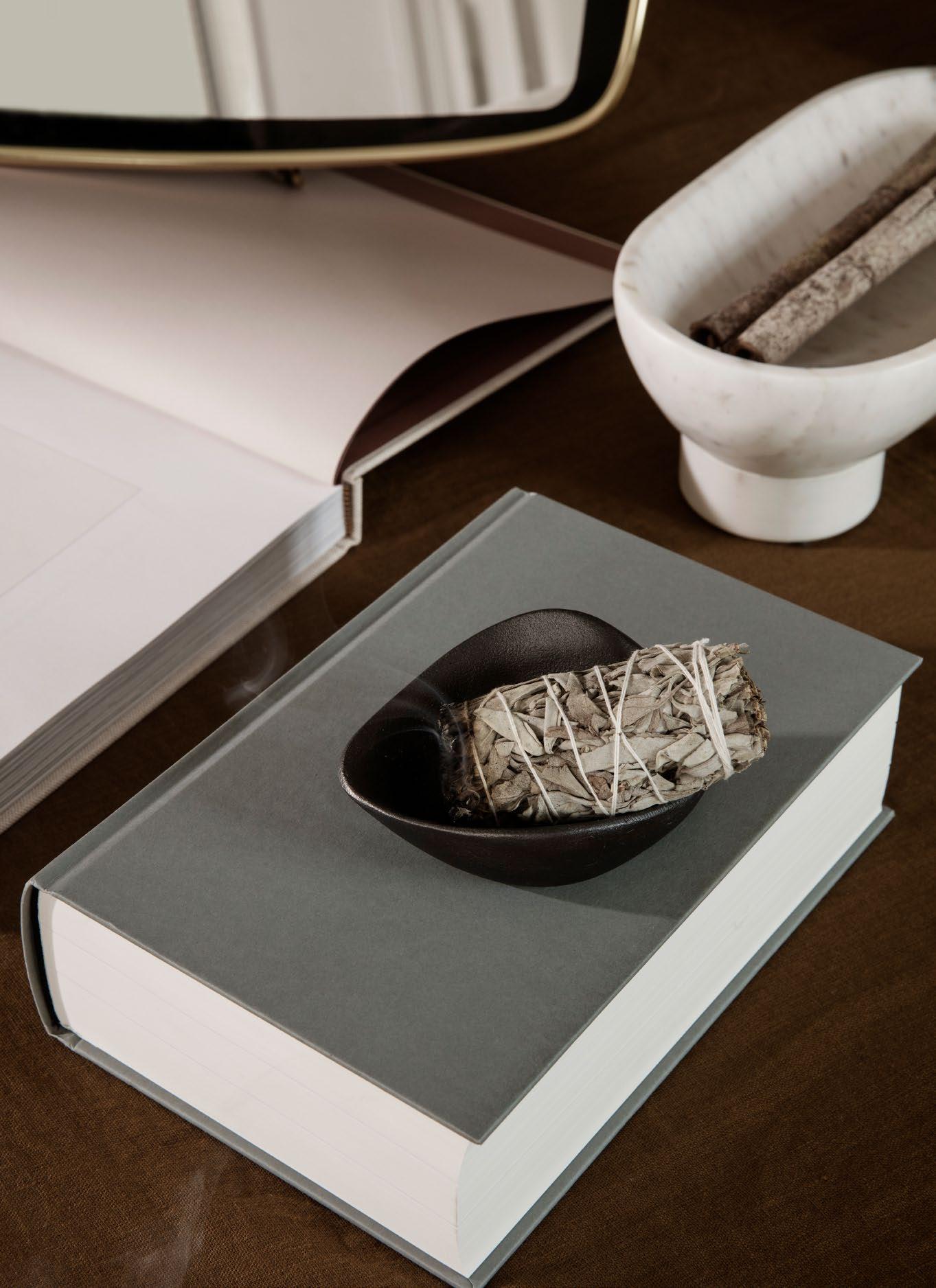 Sometimes you need a pause from the hectic rush of everyday life – a moment to rest, reflect and reconnect with yourself and your surroundings. Cleanse your space and mind while making room for new, positive energy with the Mind – Burner and Sage Gift Set and treat yourself or someone you care about to a moment of calm. The set includes a petite, organically shaped tray made from cast recycled aluminium and a bouquet of dry sage.