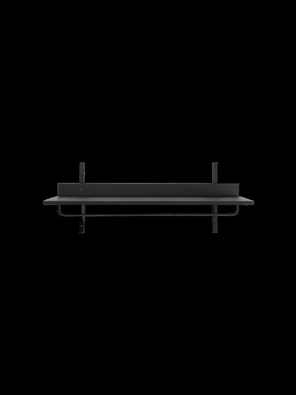 Size H: 34 x W: 87 x D: 37 cm / H: 13.4 x W: 34.3 x D: 14.6 in Material Shelf: Smoked oak veneer with MDF core. Profiles: Smoked solid oak. FSC™ Mix certified wood. Brackets and rack: Brass Packsize 1 Net. weight 2.5 kg / 5.5 lb EUR 289 DKK 2,149 SEK 3,359 NOK 3,359 GBP 269 USD 385 NEW Price