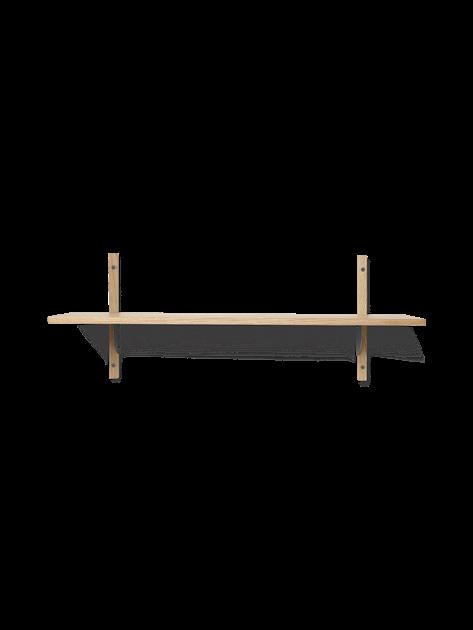 Size H: 34 x W: 87 x D: 26.1 cm / H: 13.4 x W: 34.3 x D: 10.3 in Material Shelf: Smoked oak veneer with MDF core. Profiles: Smoked solid oak. FSC™ Mix certified wood. Brackets: Brass Packsize 1 Net. weight 2.8 kg / 6.2 lb EUR 169 DKK 1,249 SEK 1,949 NOK 1,949 GBP 155 USD 225 NEW Price
