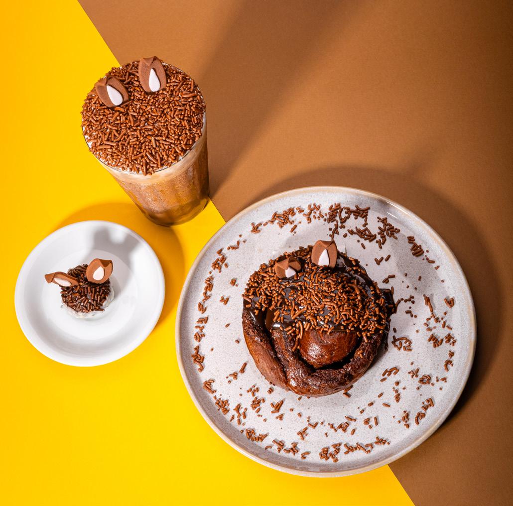 Entre as novidades do cardápio estão o Frappé Brigadeiro (R$ 28 nas lojas e R$ 34 no iFood), bebida gelada que combina café e chocolate; o Brigadeiro Coelhinho (R$ 10 nas