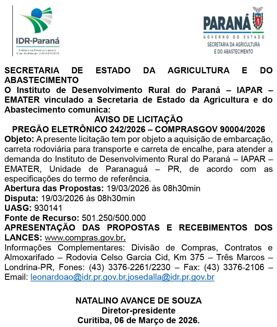 Maringá instituiu o Programa de Incentivo à Cidadania Ativa, que prevê pagamento de até R$ 1 mil para denúncias que ajudem a identificar infrações urbanas e ambientais. A iniciativa foi regulamentada pelo Decreto nº 291/2026, com base em lei municipal. As denúncias devem ser feitas pelo telefone 153 da Guarda Municipal. O objetivo é reforçar a segurança pública e a preservação do patrimônio coletivo. Cooperativismo em pauta O presidente da Associação de Jornais e Portais do Paraná, Nery Thomé, recebeu na sede da Tribuna do Interior o presidente executivo da Coamo Cooperativa, Airton Galinari. O encontro destacou o modelo de gestão e a força do cooperativismo no Estado. A Coamo é considerada uma das maiores cooperativas agroindustriais da América Latina. A visita reforçou o diálogo entre imprensa regional e setor produtivo. Redes sociais