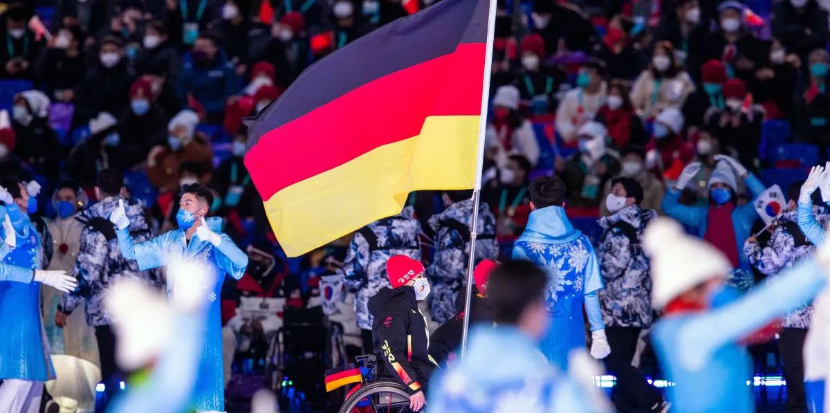 Delegação alemã durante a cerimônia de abertura da Paralimpíada de Inverno de Beijing, em 2022 • Jens Büttner/ picture alliance via Getty Images