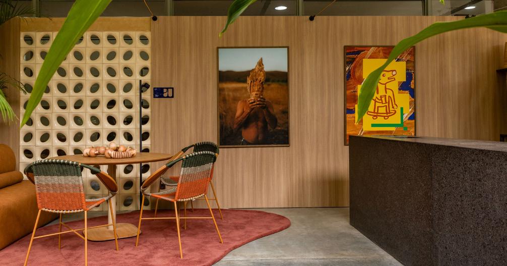 de convivência e pausa, estimulando encontros entre visitantes. A iluminação e a estrutura independente respeitam as características do edifício projetado por Oscar Niemeyer. Além da proposta arquitetônica, o espaço também abriga obras inéditas de artistas convidados, que exploram diferentes linguagens visuais. Elementos naturais e objetos decorativos ajudam a compor a atmosfera sensorial do ambiente.
