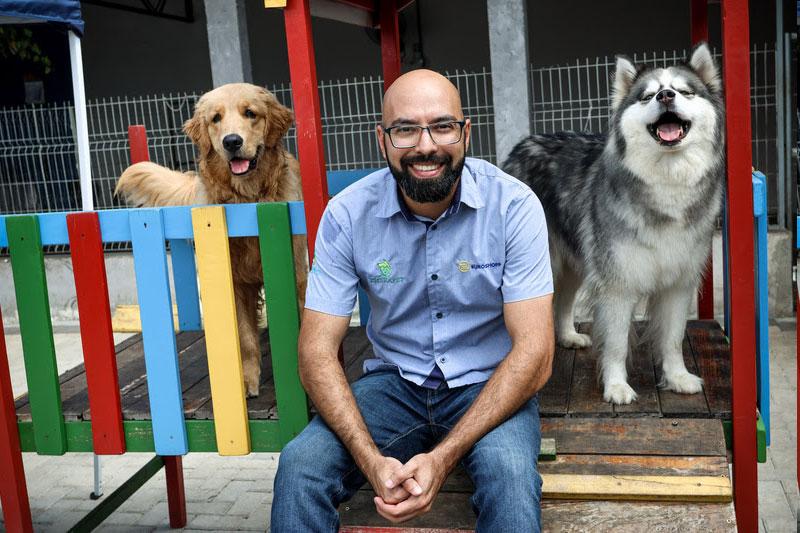 Por condições de saúde, se afastou do trabalho temporariamente. Mas um convite para atuar na área comercial pet abriu as portas para iniciar o trabalho de consultoria. Agora ele atende diversos profissionais do município e da Região Metropolitana, como Tiago Nadalet e Regiane de Fátima Martins, da Creche Vila Chico Bento, de Pinhais. O local serviu de cenário para as fotos dos serviços prestados por Haron. O consultor oferece cursos e orientações para melhorar o bemestar dos pets, incentivando a criação ética e responsável, e também aprimoramento da gestão. O objetivo, explica, é vender produtos e serviços de forma consciente, de olho no bem-estar do animal. Com essa conduta, consegue colaborar com o ODS 3 (Saúde e Bem-estar) e ODS 12 (Consumo e Produção Responsáveis), o que o habilitou para figurar no livro “O Microcrédito no Paraná”.