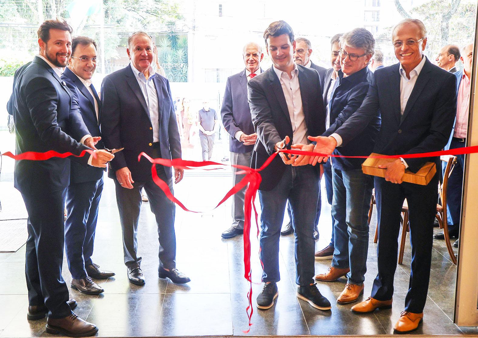 Antes da cerimônia de inauguração, Eduardo Pimentel e seu pai, Cláudio Slaviero, conheceram as instalações ao lado do CEO do Grupo Royal, Gustavo Ribeiro, responsável pelo empreendimento ao lado de investidores da cidade.