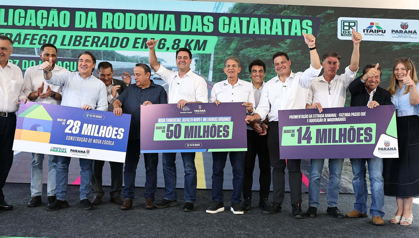 “É motivo de muita alegria entregar mais uma obra importante para Foz do Iguaçu: a duplicação da Rodovia das Cataratas. Uma rodovia que, há mais de 30 anos se falava em duplicação e nós, quando assumimos o governo, fomos atrás do projeto e de recursos para fazer a obra, sendo mais uma que o Estado executa na cidade”, afirmou Ratinho Junior.