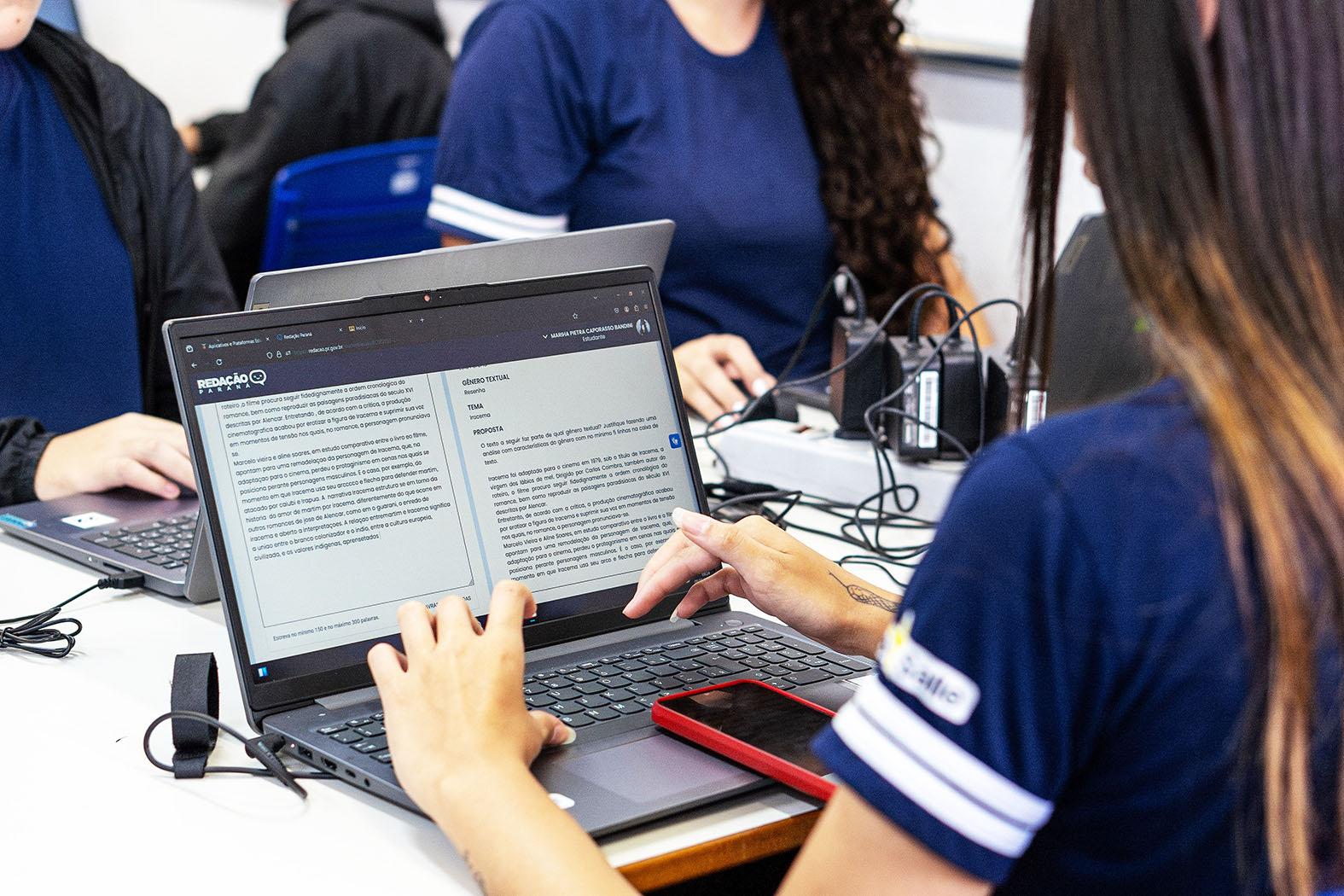 REDAÇÃO PARANÁ Desenvolvida pela Seed-PR, a ferramenta lançada em 2021 é resultado da integração entre as equipes pedagógica e tecnológica da pasta, com o intuito de fortalecer o ensino da língua portuguesa e preparar os estudantes para os desafios das avaliações escolares e nacionais. O recurso digital realiza análises automáticas das redações, avaliando critérios como coesão, coerência, gramática e argumentação, e fornece feedbacks personalizados em tempo real, tornando o aprendizado mais dinâmico e autônomo. Além de aperfeiçoar as habilidades de escrita dos estudantes, o Redação Paraná também oferece suporte aos professores, com relatórios e indicadores que facilitam o acompanhamento individual e coletivo do desempenho das turmas. A versão atualizada em 2025 foi desenvolvida com base nos critérios aplicados no Enem, reforçando o alinhamento pedagógico da ferramenta com as práticas de avaliação oficiais, com oferta de um extenso banco de temas no formato exigido pelo Enem, tanto propostas já utilizadas quanto novas, elaboradas pela equipe pedagógica da Seed-PR. "O Redação Paraná tem se mostrado essencial na preparação dos estudantes, oferecendo atividades orientadas e devolutivas automáticas baseadas nos mesmos critérios avaliativos do exame", explica a coordenadora de Educação Digital da Seed-PR, Lorena Pantaleão.
