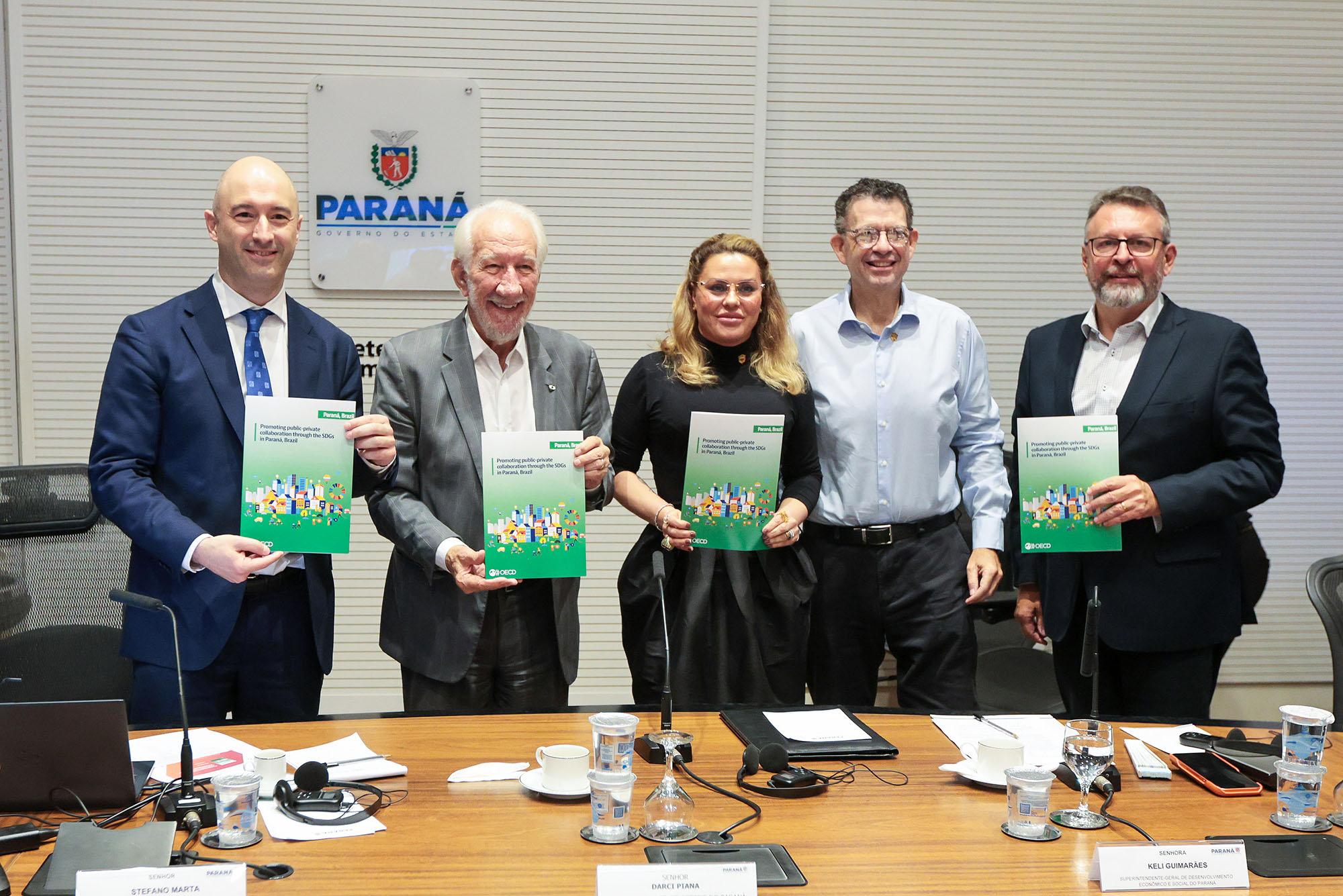 O Governo do Paraná recebeu nesta terça-feira (10) o novo relatório produzido pela OCDE. Documento tem como foco a análise e recomendações sobre como os Objetivos de Desenvolvimento Sustentável elencados pela ONU podem ser utilizados na colaboração público-privada no Paraná