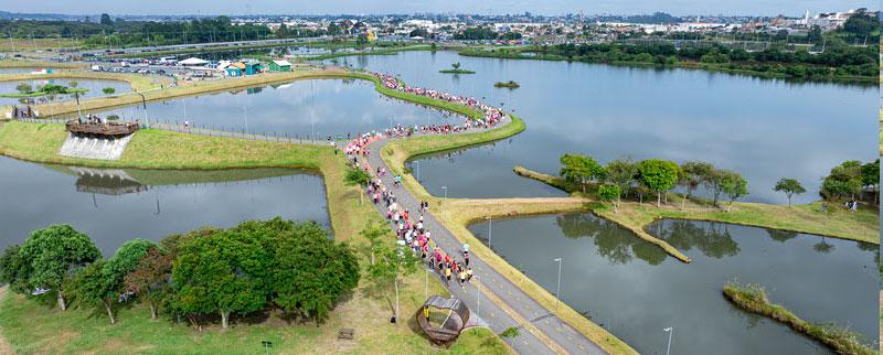 O último domingo, 8 de março, foi marcado por saúde, integração e homenagens em Pinhais. A tradicional Caminhada da Mulher, organizada pela Prefeitura, por meio da Secretaria Municipal de Cultura, Esporte e Lazer (Semel), reuniu 520 pessoas no Parque das Águas para celebrar o protagonismo feminino e o aniversário de 34 anos da cidade. O evento, que já se tornou um marco no calendário local, aproveitou o cenário de um dos principais cartões-postais do município para promover o bem-estar. Embora a homenagem fosse centralizada nas mulheres, o público foi diversificado: famílias, amigos e pets acompanharam o percurso, transformando a manhã em um momento de lazer coletivo.
