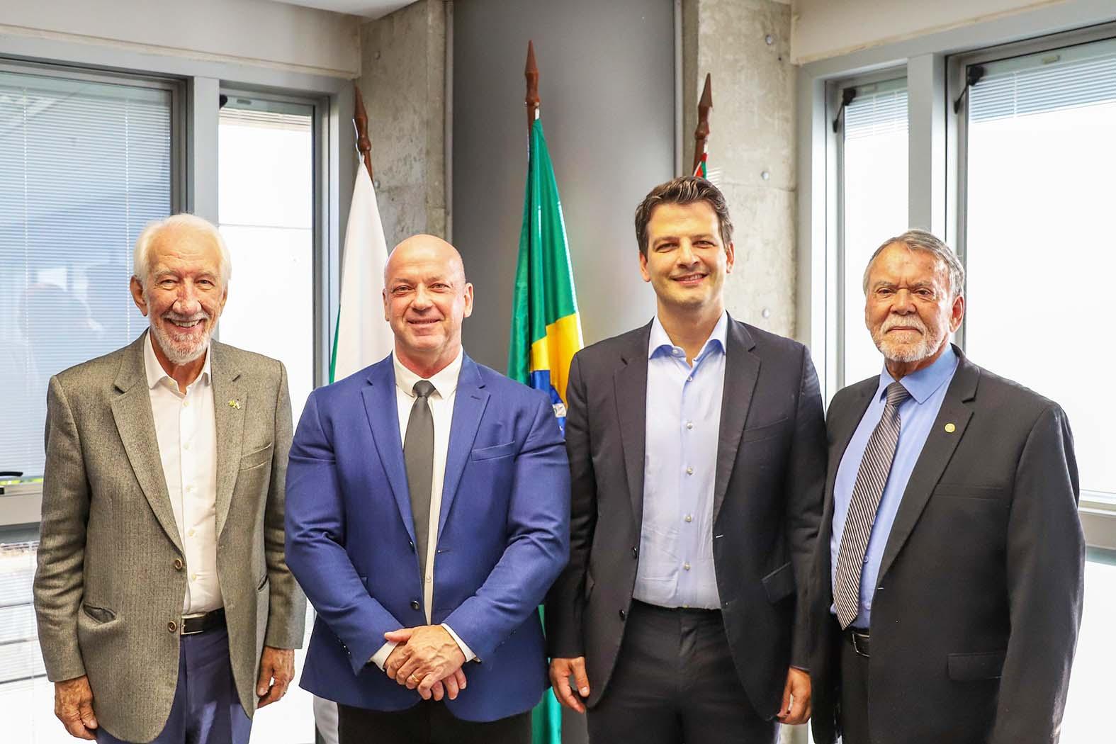 Prefeito Eduardo Pimentel e o vice-governador Darci Piana, parabenizam Francisco Zanicotti pela recondução ao MPPR. Curitiba, 09/04/2026. Foto: Igor Jacinto/Vice-governadoria Relações institucionais