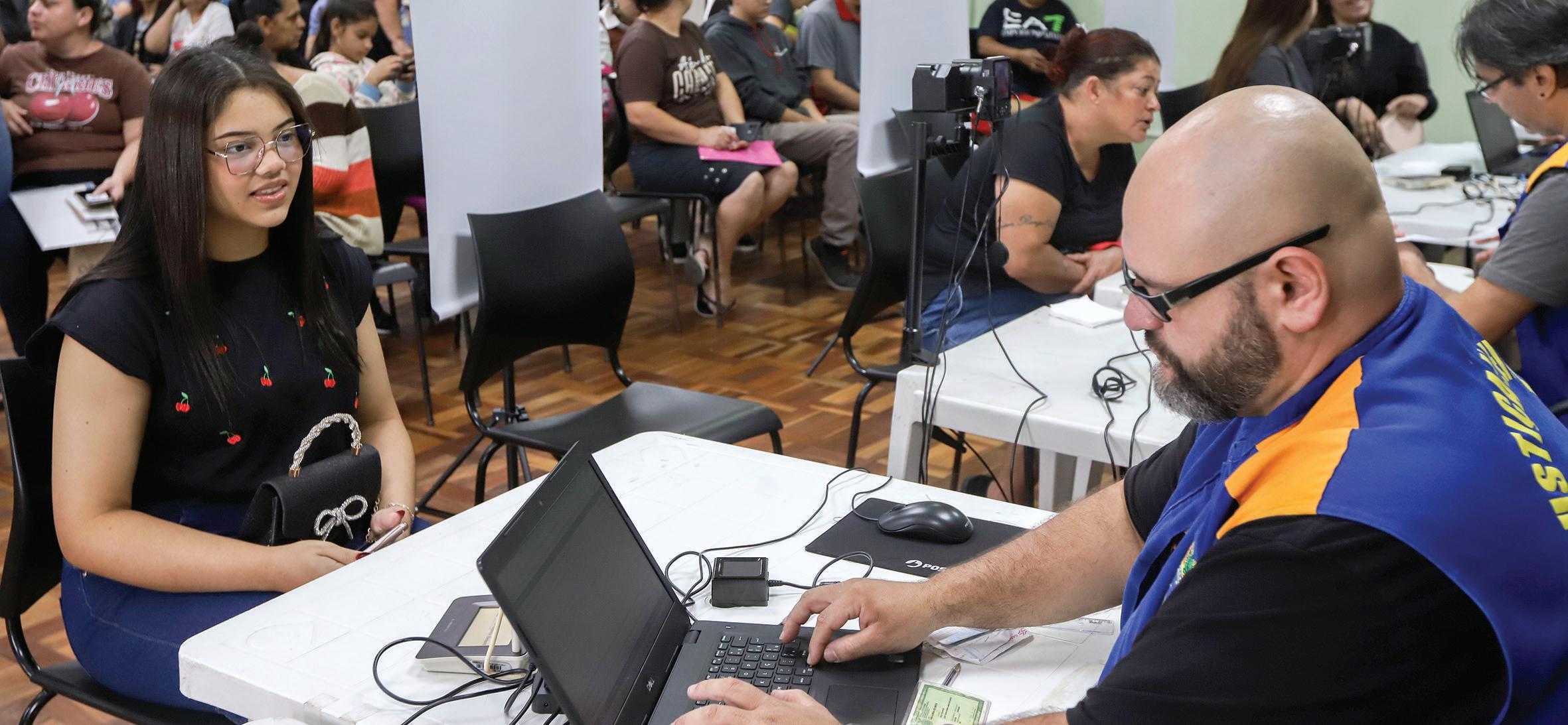 9h, horário de início do evento realizado pela Prefeitura de Curitiba em parceria com o Tribunal Regional Eleitoral (TRE) e o programa Justiça no Bairro. Moradores dos bairros Tatuquara, Caximba e Campo de Santana aguardavam atendimento para regularizar a situação do título de eleitor. Quem possui alguma pendência com a Justiça Eleitoral pode regularizar a situação no mutirão, que segue até esta quarta-feira (15/4). Durante a ação, a equipe do TRE realiza emissão da primeira via do título, atualização de dados cadastrais e transferência de domicílio eleitoral, sem necessidade de agendamento.