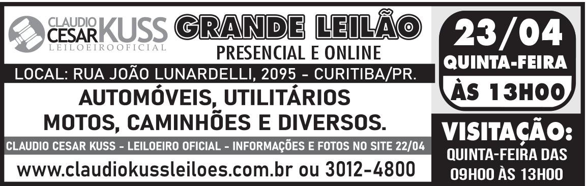A Maringá Soldas S/A, CNPJ 79.142.139/0001-20 torna público que requereu à Secretaria Municipal do Meio Ambiente de Curitiba - SMMA a Renovação da Licença de Operação, para Fabricação de peças e acessórios para o sistema motor de veículos automotores, situada à Rua João Alves, 285, CIC, Curitiba/PR