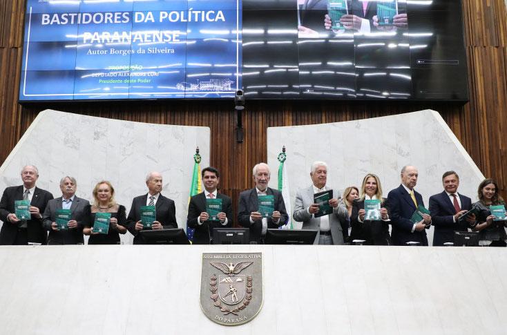 Com grande presença de lideranças políticas do Paraná, o médico e político Borges da Silveira lançou seu livro, o “Bastidores da Política Paranaense”, na segundafeira (13/4), no Plenário da Assembleia Legislativa do Paraná. A obra reúne as memórias de Borges, que acompanhou de perto a política paranaense desde os anos 1960, quando iniciou sua trajetória no governo Ney Braga.