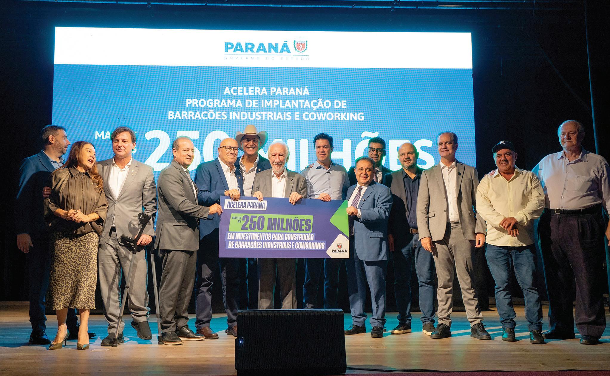 O Governo do Paraná está investindo R$ 255 milhões para construção de barracões industriais e espaços de coworking em 250 cidades. O governador em exercício Darci Piana anunciou o aporte na terça-feira (17/6) durante a formalização coletiva dos convênios firmados entre o Estado e as gestões municipais em evento realizado no Museu Oscar Niemeyer (MON), em Curitiba. Fruto de uma parceria entre as secretarias estaduais das Cidades (Secid) e da Indústria, Comércio e Serviços (SEIC), as estruturas ampliam a capacidade de atração de novos investimentos e ligações nas cadeias produtivas municipais. Os investimentos incluem recursos do Governo do Paraná, em parceria com as bancadas federal e estadual, e vão possibilitar a construção de 359 barracões industriais e 29 coworkings.