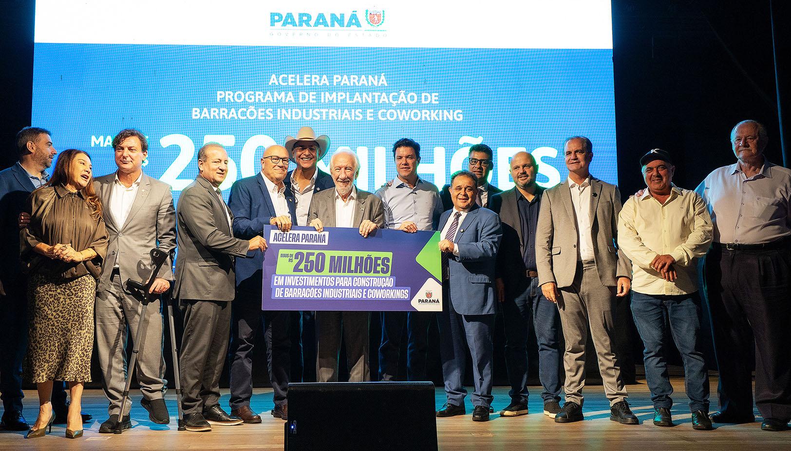 O Governo do Paraná está investindo R$ 255 milhões para construção de barracões industriais e espaços de coworking em 250 cidades. O governador em exercício Darci Piana anunciou o aporte nesta terça-feira (17) durante a formalização coletiva dos convênios firmados entre o Estado e as gestões municipais em evento realizado no Museu Oscar Niemeyer (MON), em Curitiba. Fruto de uma parceria entre as secretarias estaduais das Cidades (Secid) e da Indústria, Comércio e Serviços (SEIC), as estruturas ampliam a capacidade de atração de novos investimentos e ligações nas cadeias produtivas municipais. Os investimentos incluem recursos do Governo do Paraná, em parceria com as bancadas federal e estadual, e vão possibilitar a construção de 359 barracões industriais e 29 coworkings.