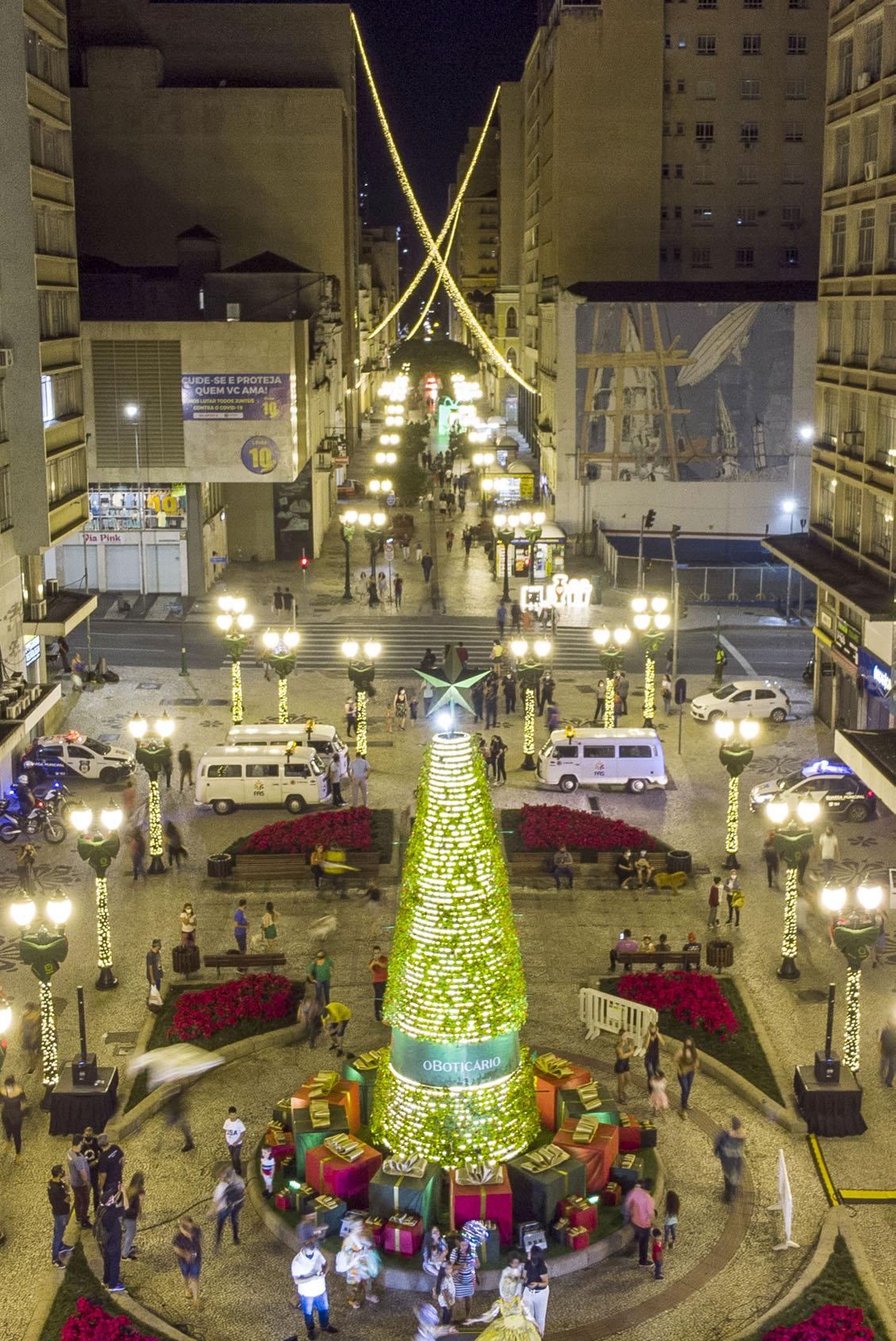 No coração do Calçadão, o chafariz da Rua XV, estará a Árvore da Vida, enfeitada em seus 11 metros de altura com milhares de vasos de flores vermelhas. A árvore ficará contornada por “candelabros”, uma iluminação especialmente feita com pontos de luz e laços nos postes republicanos.