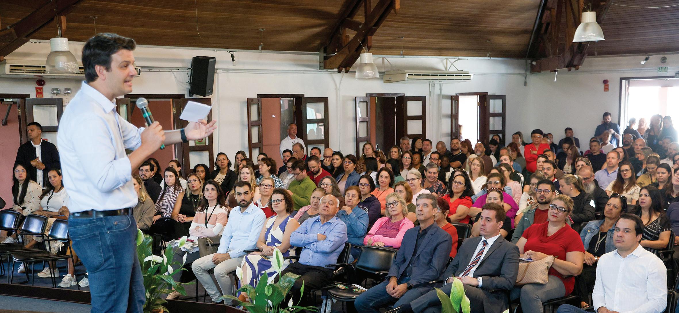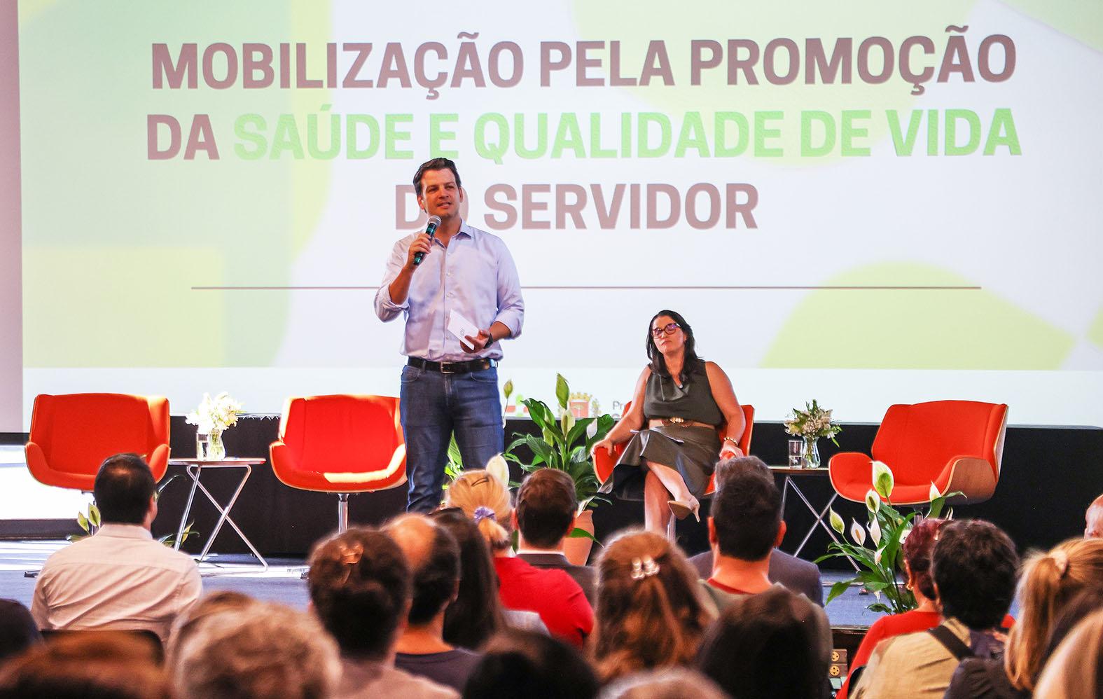 (23/4), do Dia de Mobilização pela Promoção da Saúde e Qualidade de Vida do Servidor, no Salão de Atos do Centro de Eventos Imap Barigui. Organizado pelo Instituto Curitiba de Saúde (ICS), o plano de saúde dos servidores da Prefeitura, a programação reuniu diferentes áreas do cuidado em uma experiência integrada de promoção à saúde. “Curitiba é a cidade do serviço público que funciona e todo serviço público se resume à melhoria da qualidade de vida da população. Vocês, servidores, têm papel muito importante. E nós temos pensado sempre em soluções voltadas aos nossos servidores. Eu estou ao lado de vocês, contem conosco”, disse Pimentel.